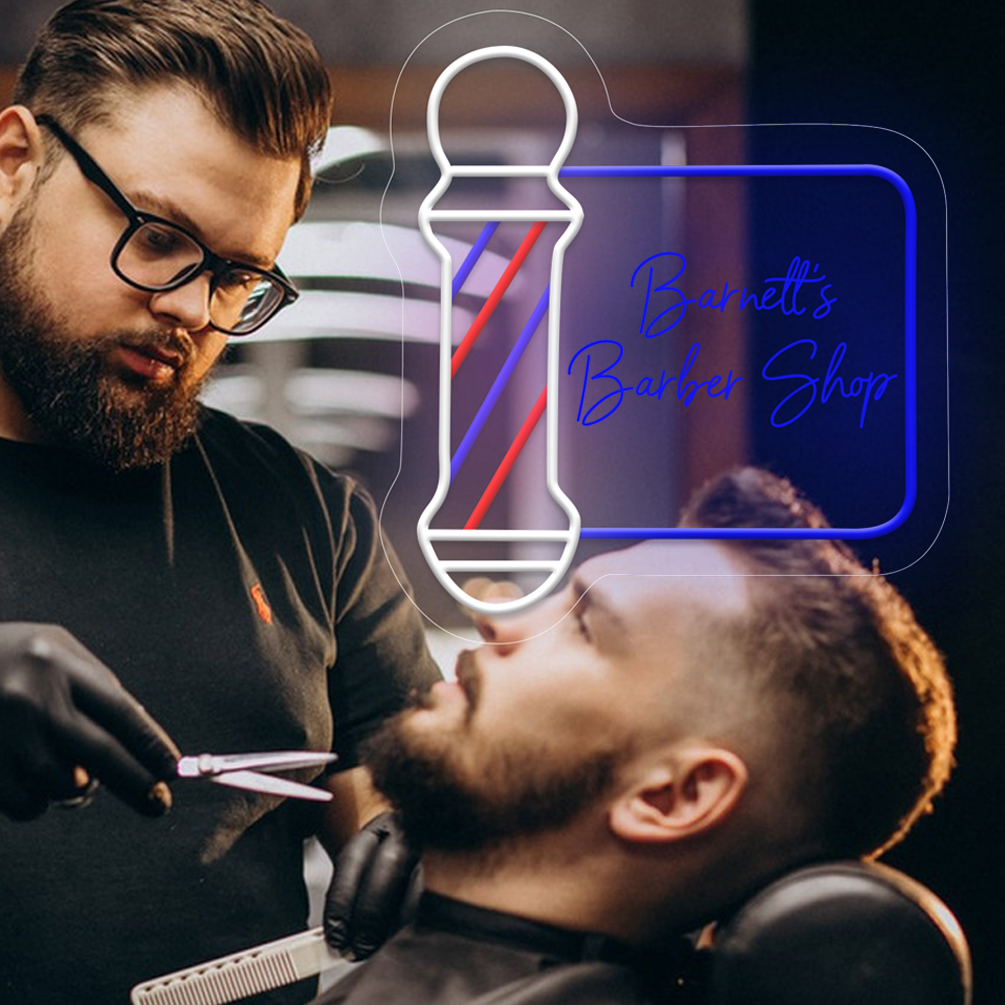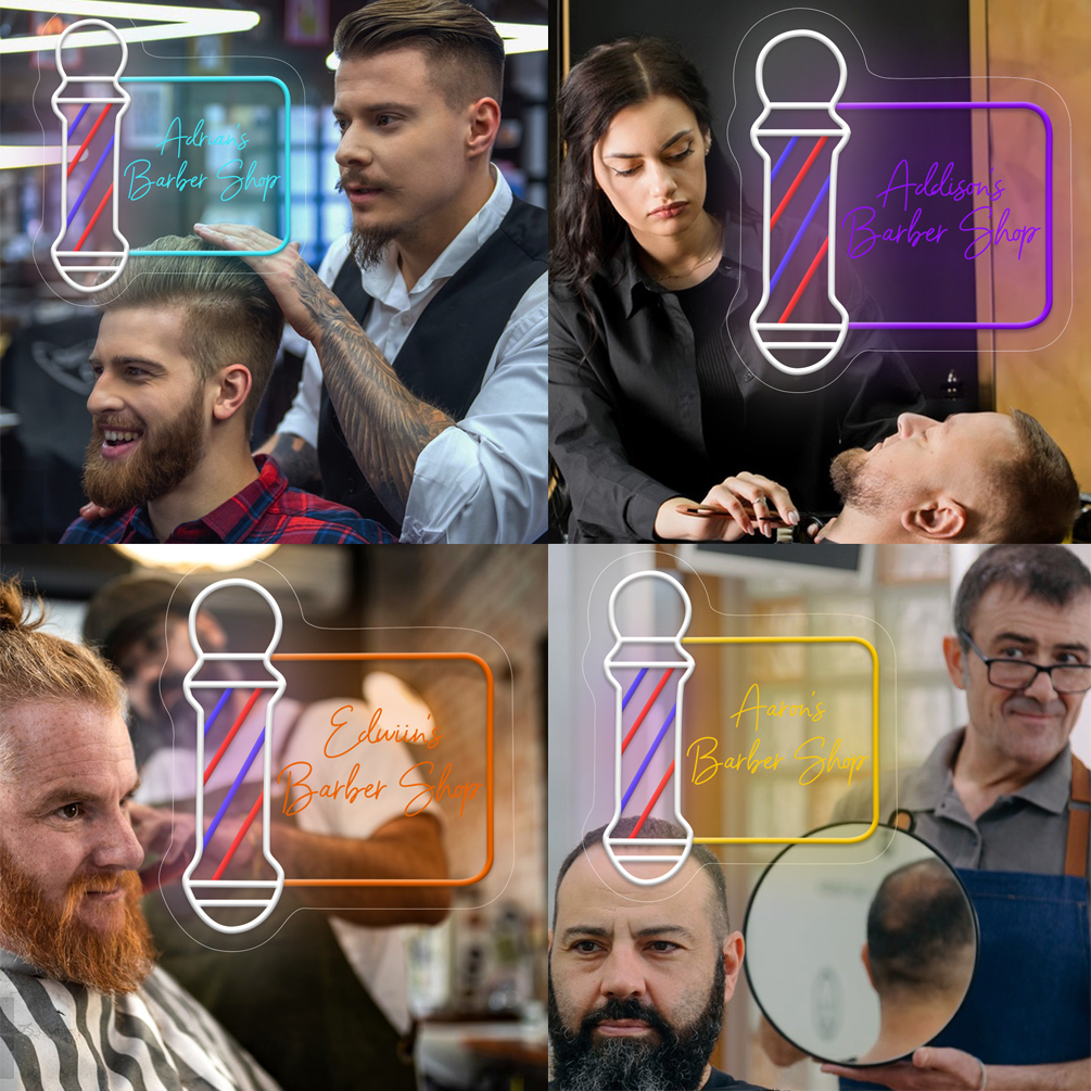 Customised barber neon sign with 3D engraving and LED neon lights for barbershops, parties, events, bedrooms, living rooms and home decoration, unique and ideal gift for birthdays, parties, ceremonies, graduations, housewarmings and more!