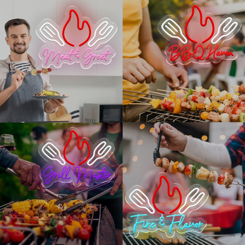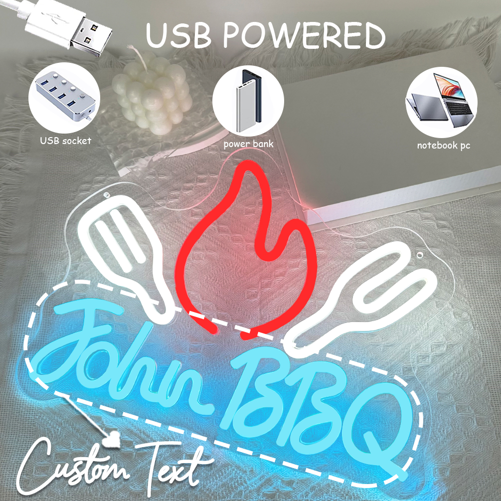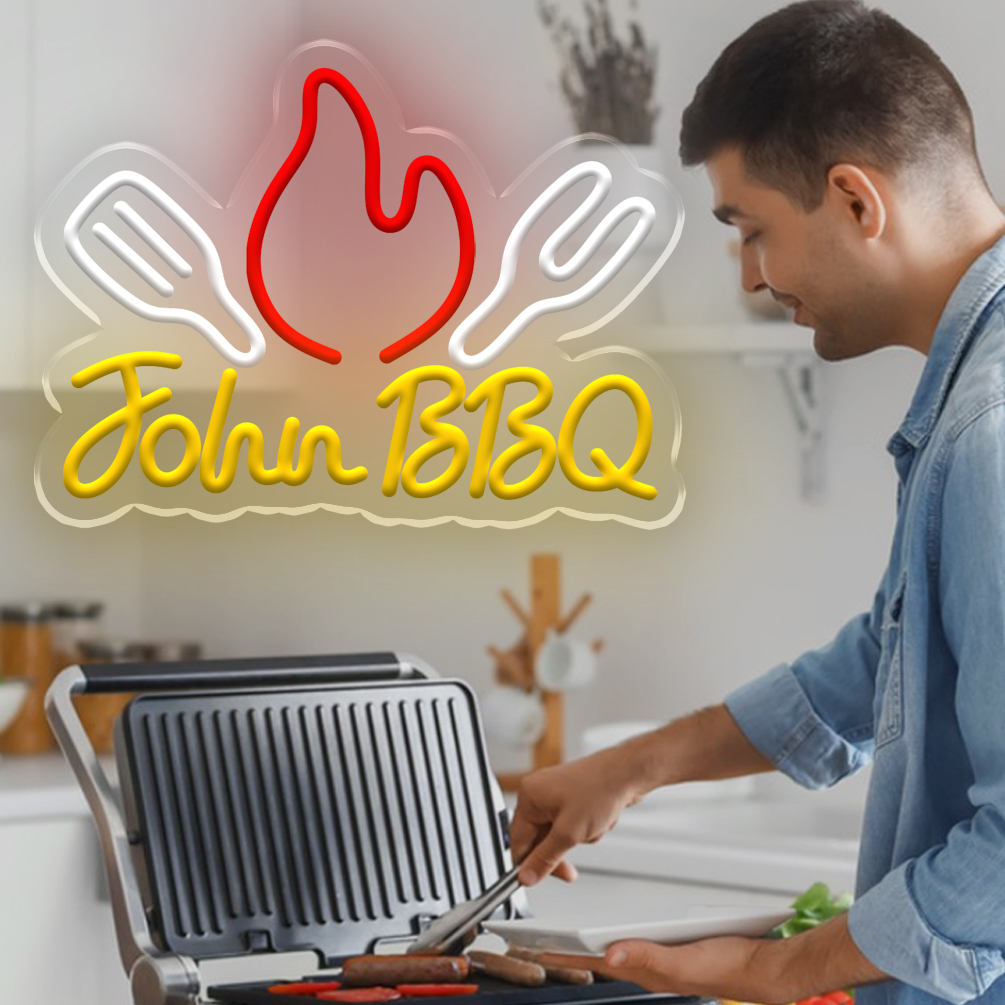Customised BBQ and name neon signs, personalised LED neon lighting for barbecues, restaurants, family gatherings, parties, kitchens, living rooms and home décor. The perfect unique gift for barbecue parties, clubs, housewarming celebrations and more!