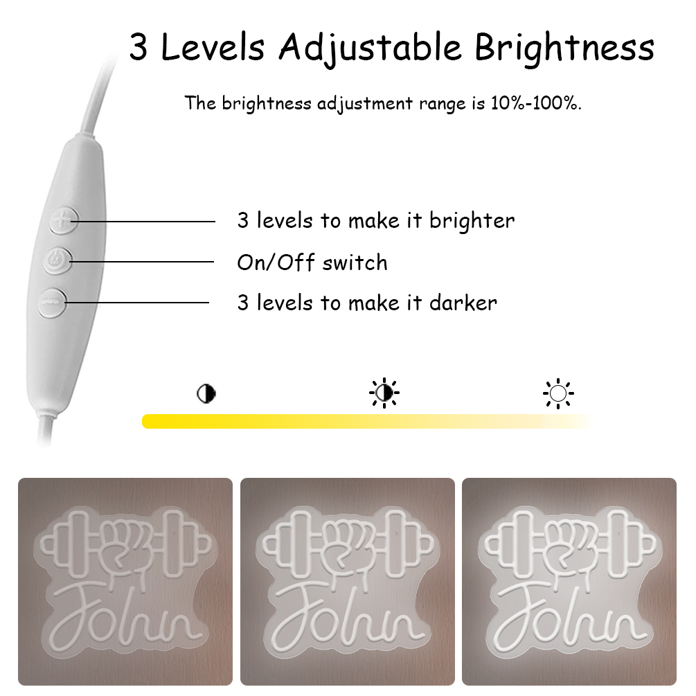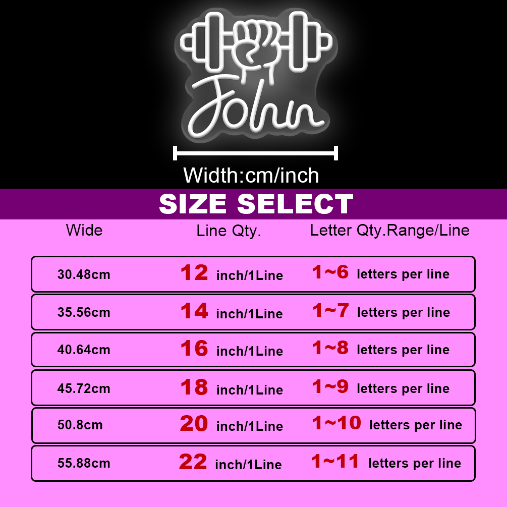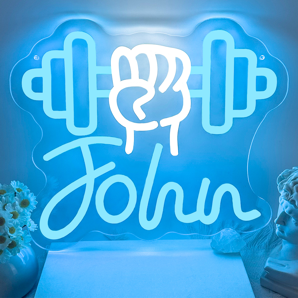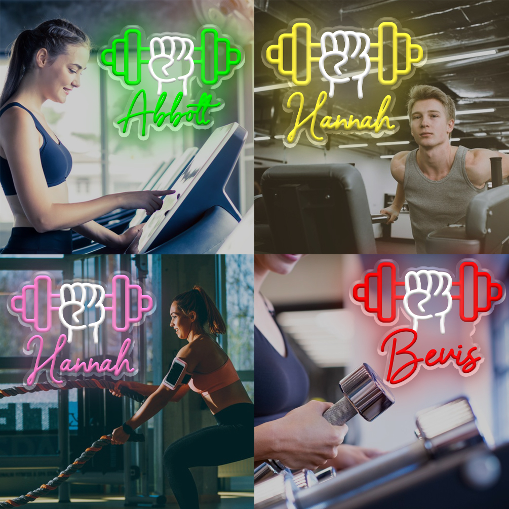 Customised dumbbell and name neon signs, personalised LED neon lighting, suitable for themed parties, gyms, fitness centres, sports clubs, shops, living rooms and home décor. An ideal unique gift for parties, clubs, housewarmings and other occasions.