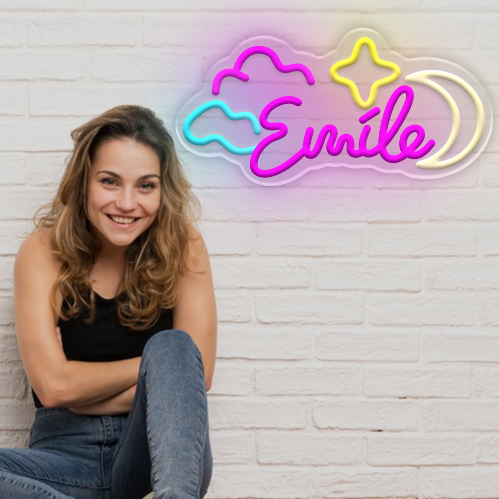 Customised Fantasy Clouds with Moon and Name Neon Sign, Personalised LED Neon Lights for Home, Italian Restaurant, Business, Kitchen, Living Room and Home Decor, Ideal Unique Gift for Home, Shop, Housewarming and more!