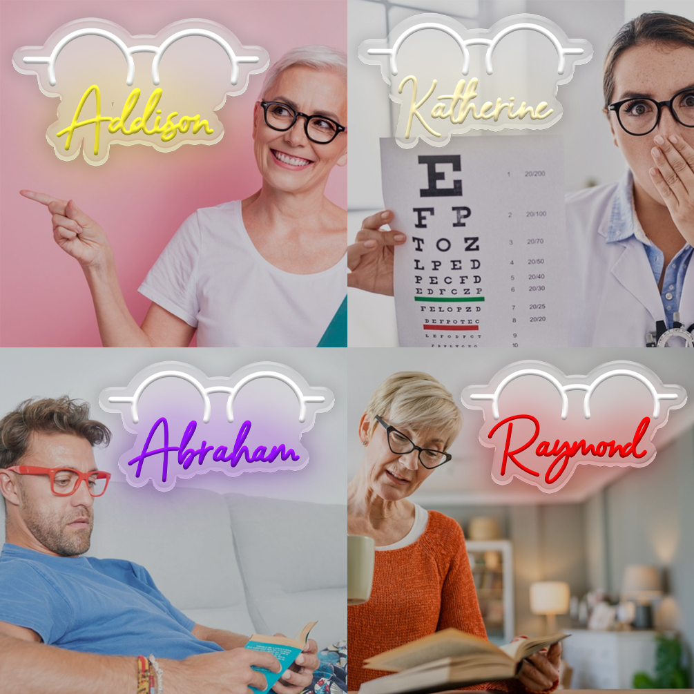 Customised glasses and name neon signs, personalised LED neon lighting, perfect for opticians, offices, bars, clubs, living rooms and home décor. An ideal unique gift for optometry clinics, opticians, housewarming celebrations and more!