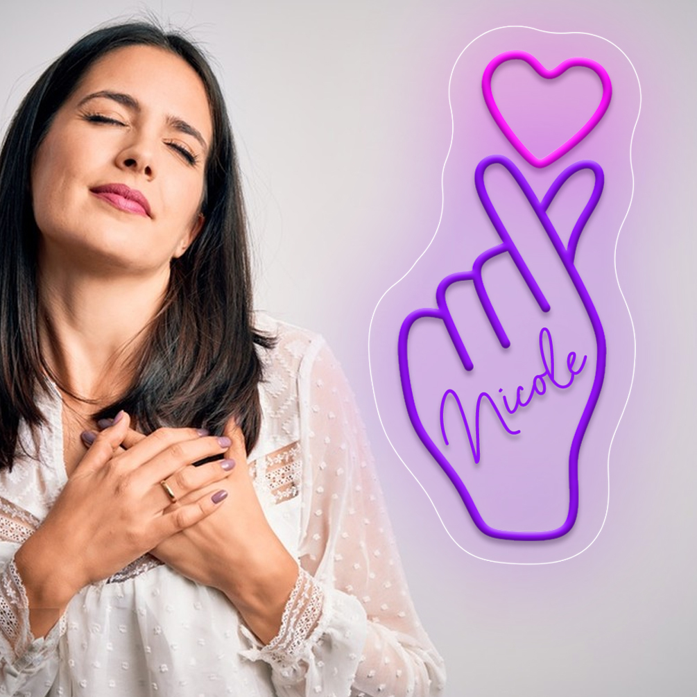 Customised hand than heart pattern neon sign with 3D engraved LED neon light, suitable for barber shops, parties, events, bedrooms, living rooms and home decoration, unique and ideal gift for birthdays, parties, ceremonies, graduations, housewarming and more!