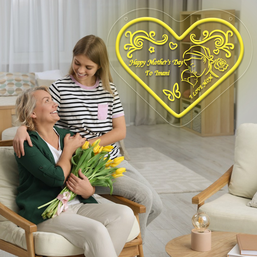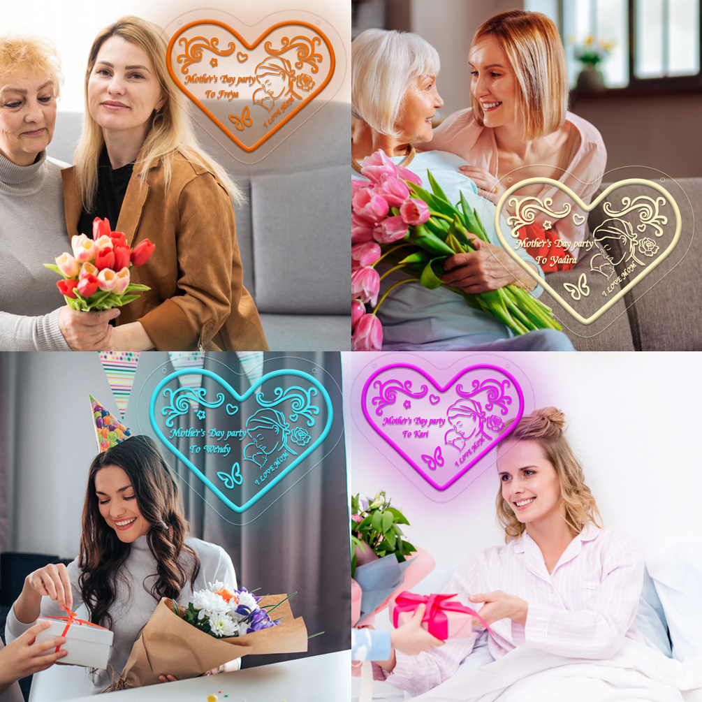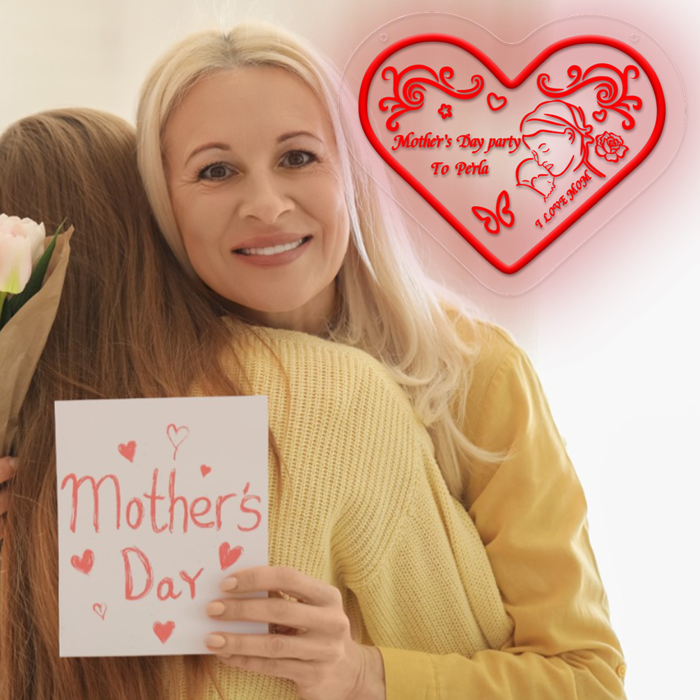Customised Mother’s Day heart and name neon sign with 3D engraving and personalised LED neon for Mother’s Day, events, children’s rooms, bedrooms, living rooms and home decor, unique and ideal gift for Mother’s Day, housewarming and for mothers!