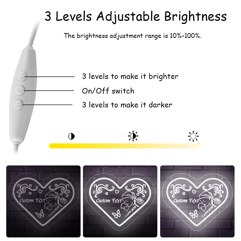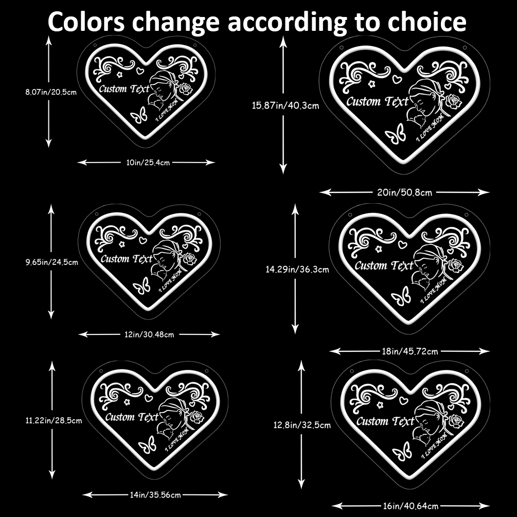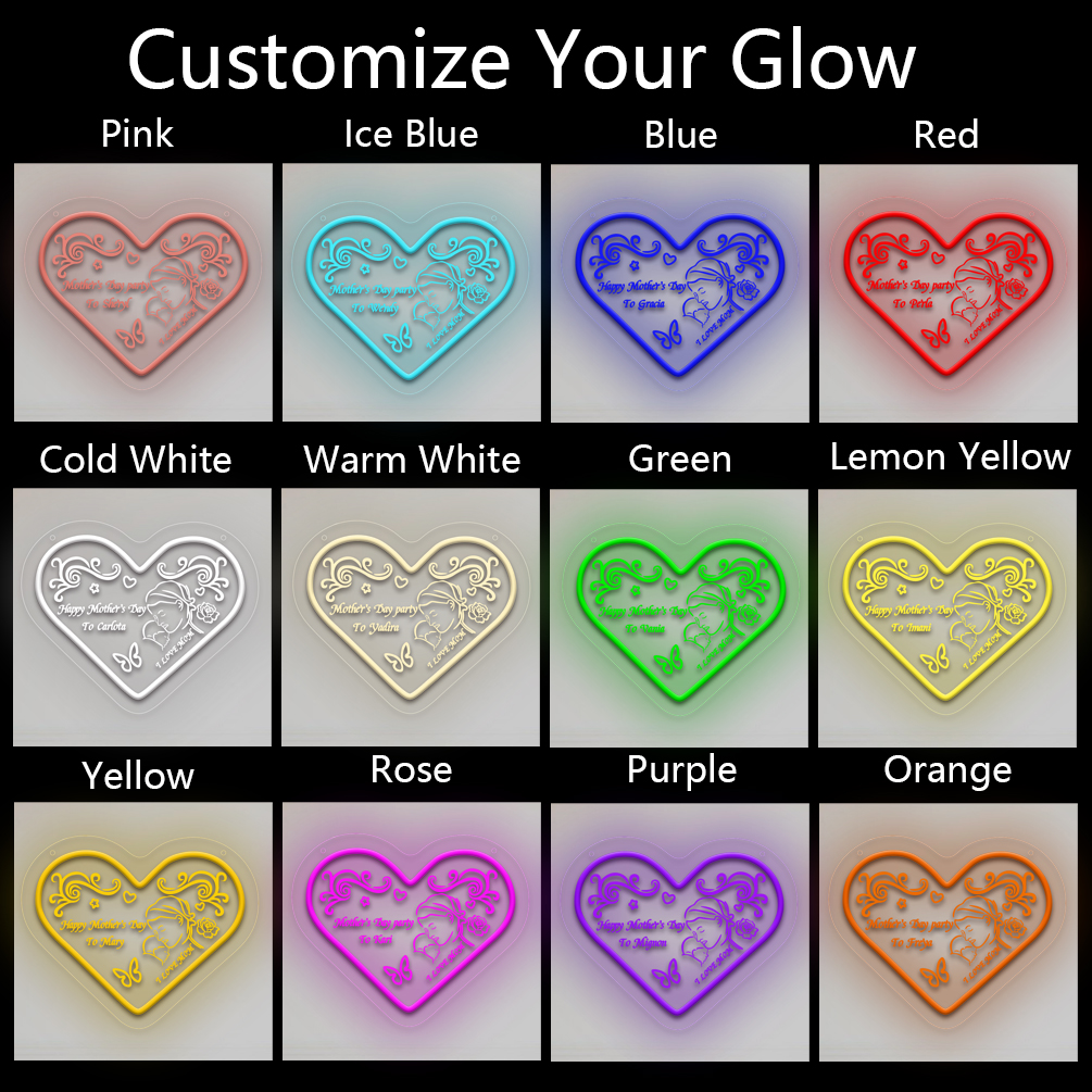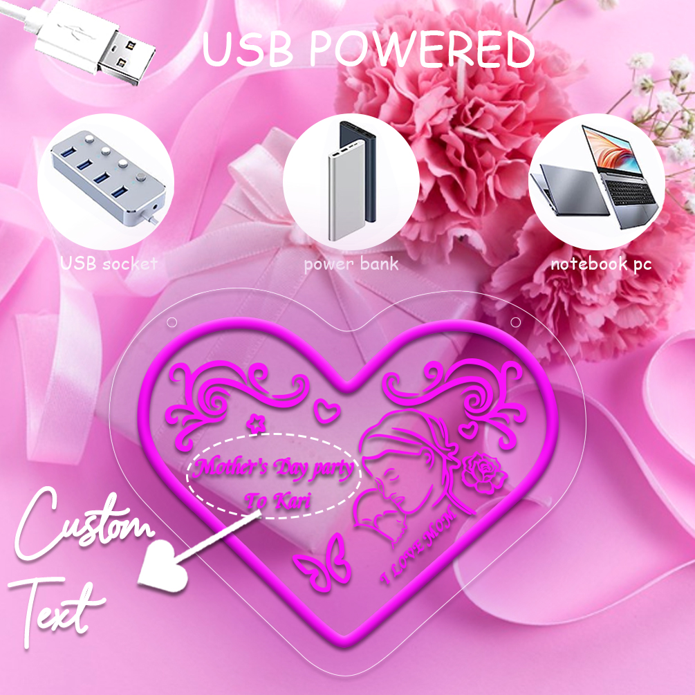 Customised Mother’s Day heart and name neon sign with 3D engraving and personalised LED neon for Mother’s Day, events, children’s rooms, bedrooms, living rooms and home decor, unique and ideal gift for Mother’s Day, housewarming and for mothers!