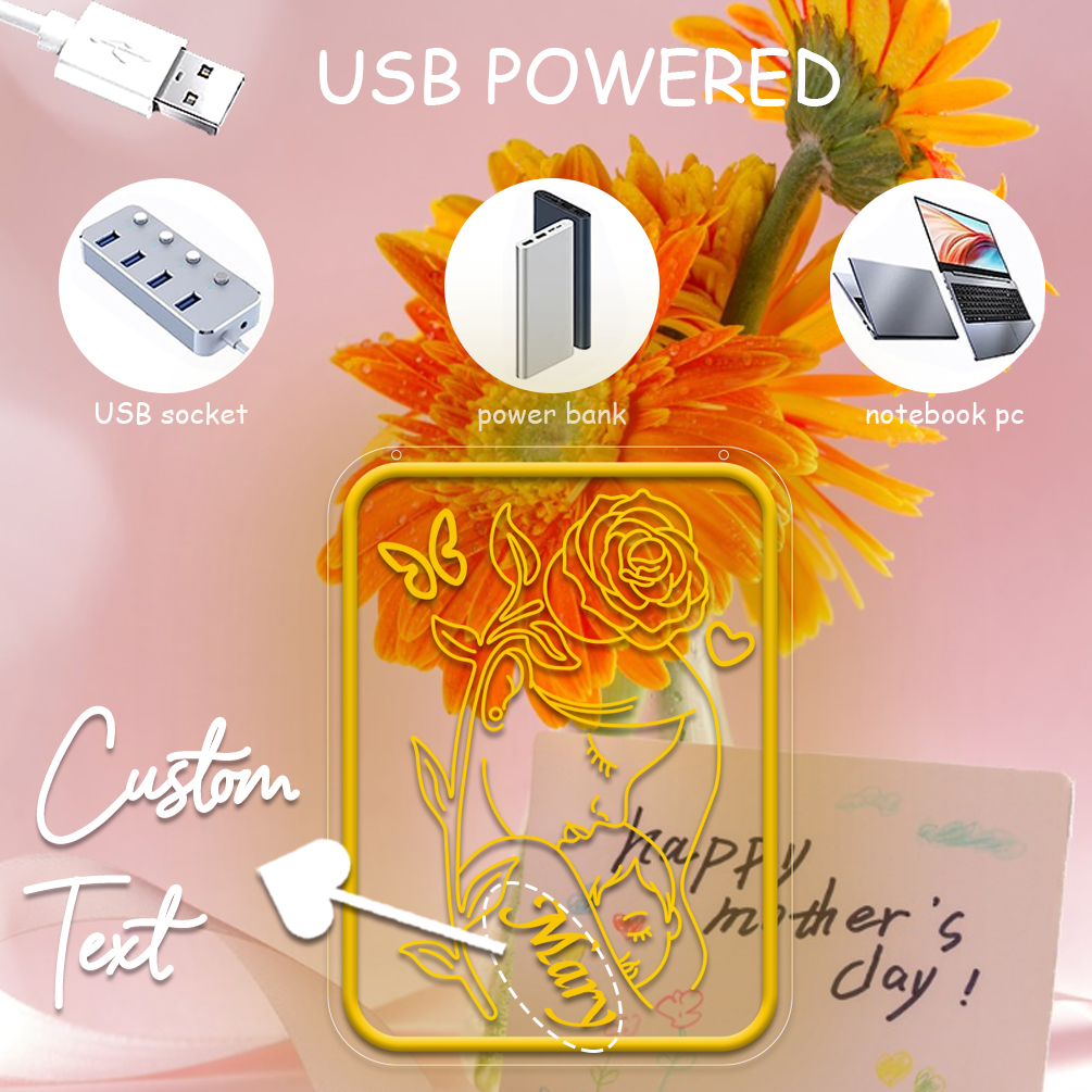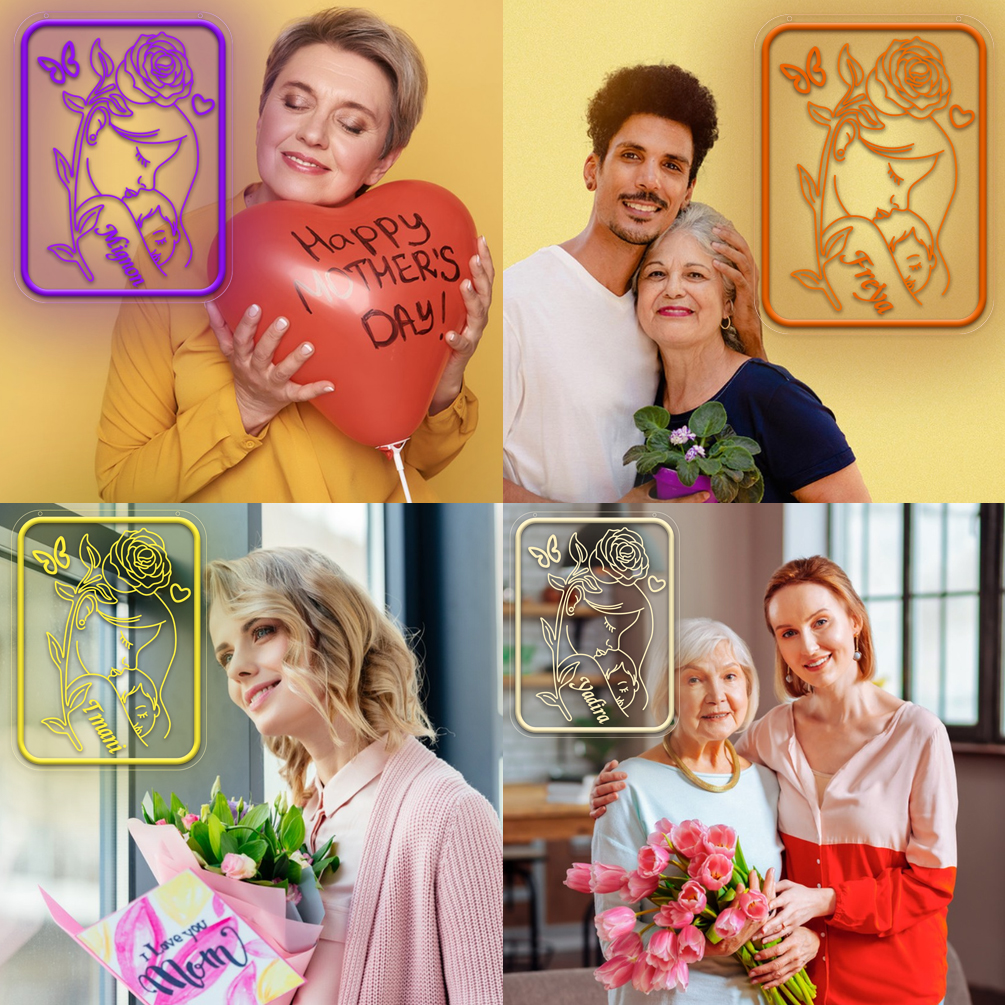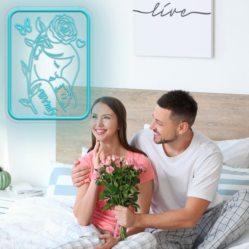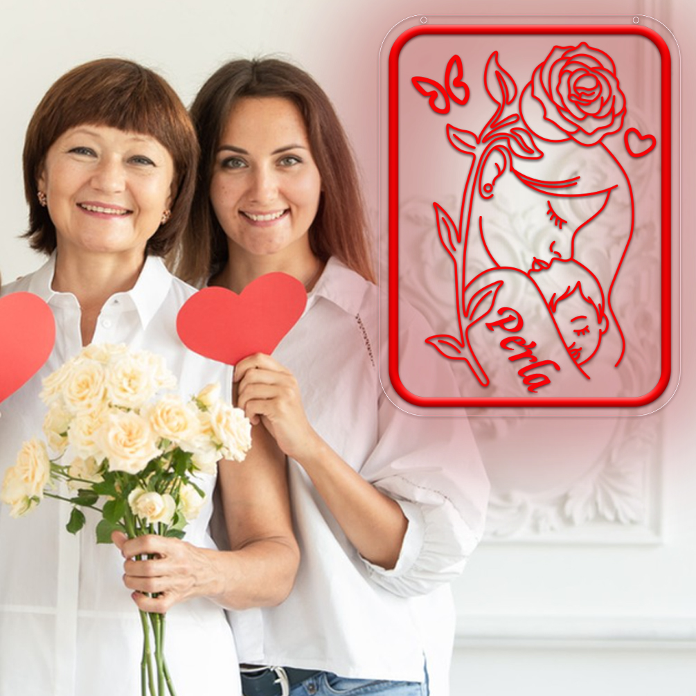 Customised Mother’s Day Rectangle and Name Neon Sign, 3D Engraving, Personalised LED Neon for Mother’s Day, Events, Children’s Rooms, Bedrooms, Living Rooms and Home Décor, Unique and Ideal Gift for Mother’s Day, Housewarming and for Mothers!