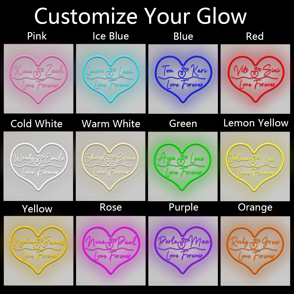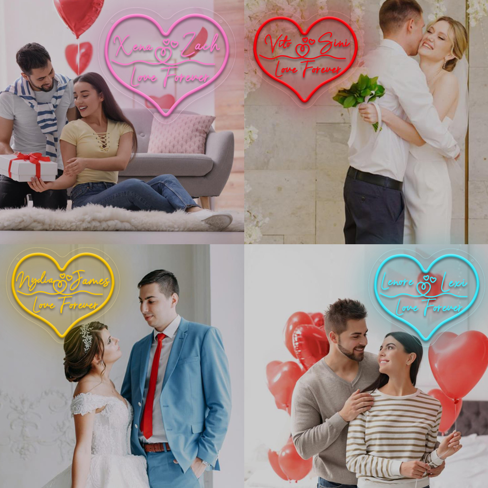 Customised neon hearts with names, 3D engraving, personalised LED neon lights for weddings, events, parties, bedrooms, living rooms and home decor, unique and ideal gifts for birthdays, weddings, ceremonies, Valentine’s Day, Children’s Day and more!