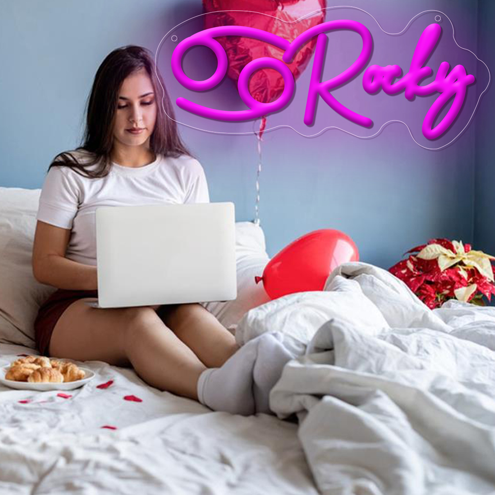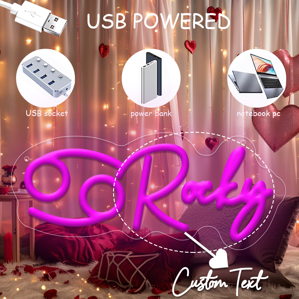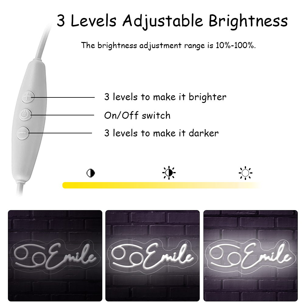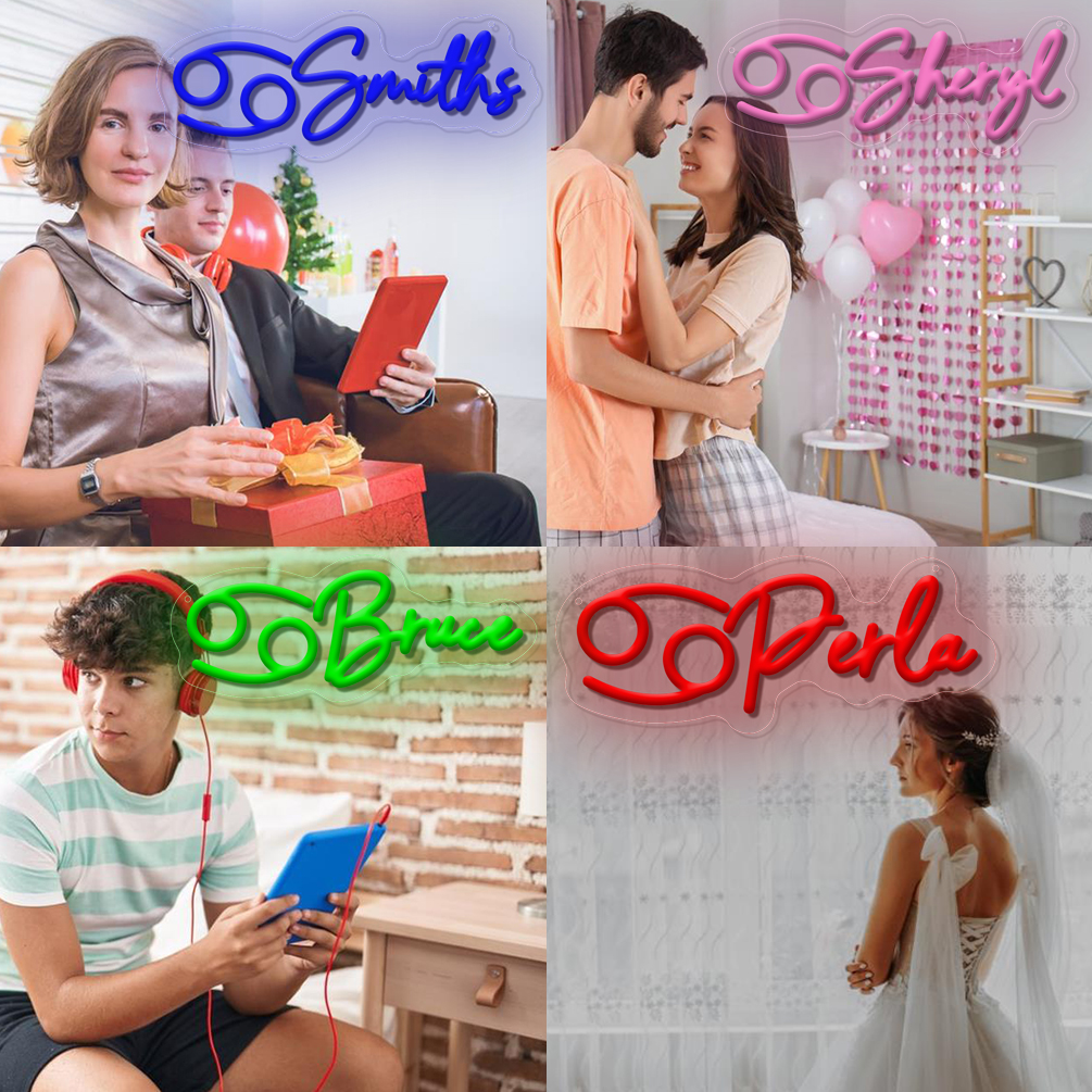 Customised neon sign with Cancer zodiac sign pattern and name , personalised LED neon sign for wedding, children’s room, bedroom, living room decorations, unique and ideal gift for birthdays, weddings, graduations, children’s day, housewarming and more!