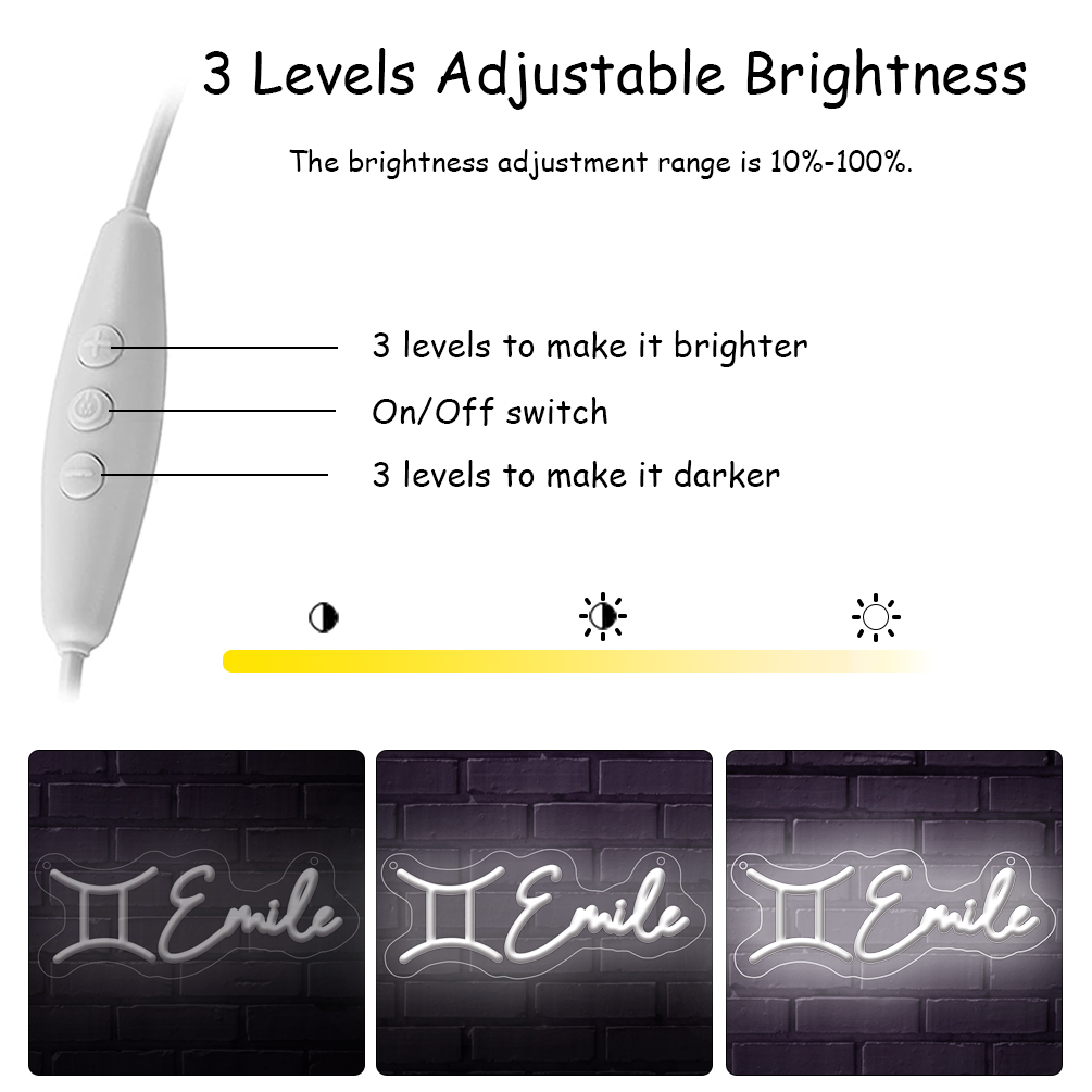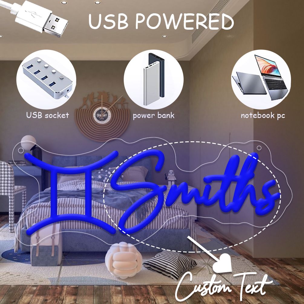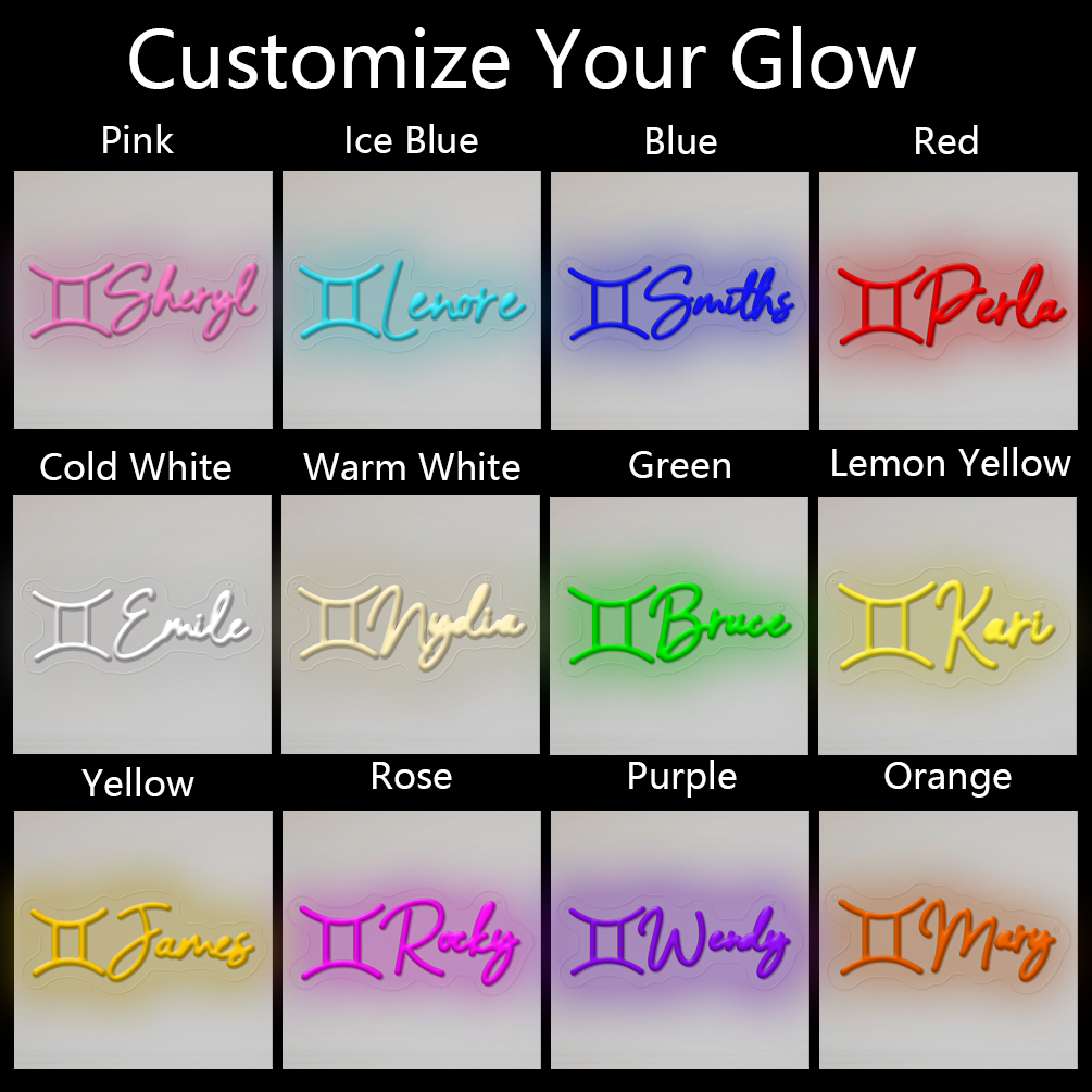Customised neon sign with Gemini constellation pattern and name , personalised LED neon sign for wedding, children’s room, bedroom, living room decorations, unique and ideal gift for birthdays, weddings, graduations, children’s day, housewarming and more!