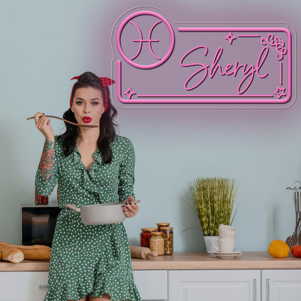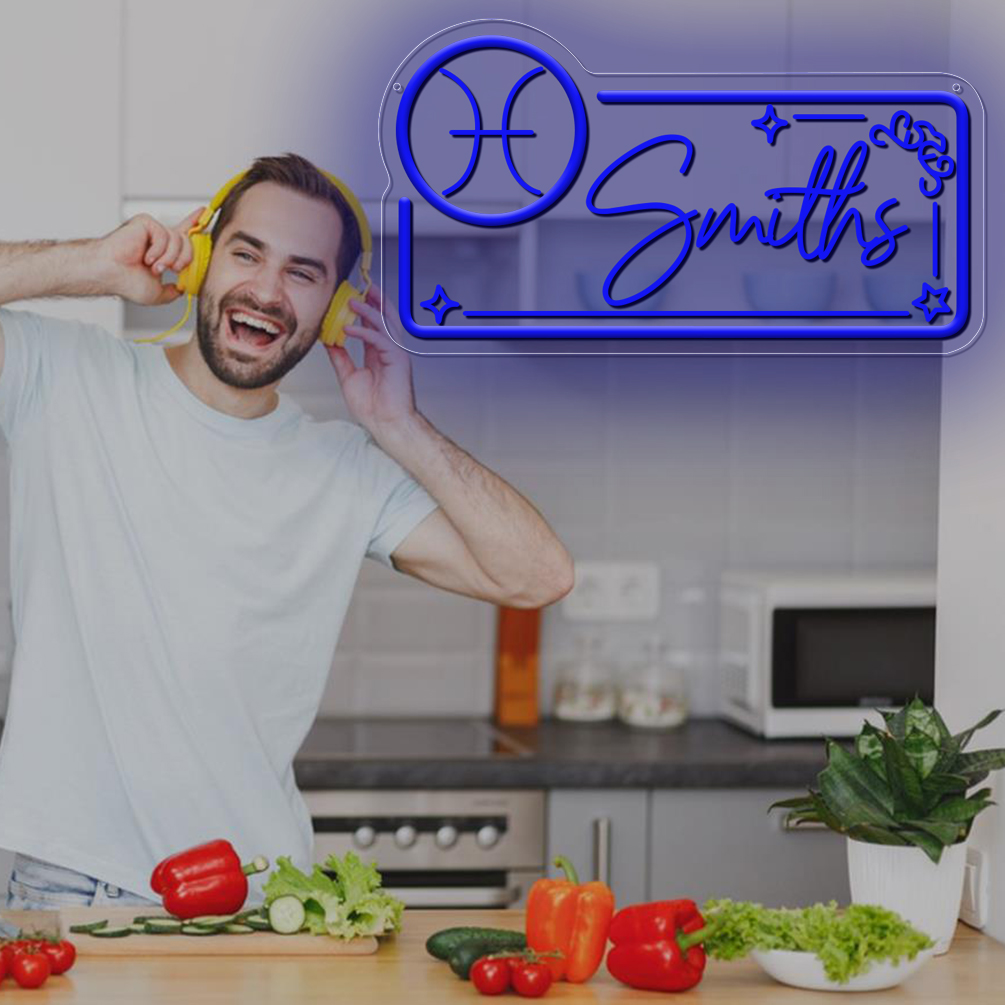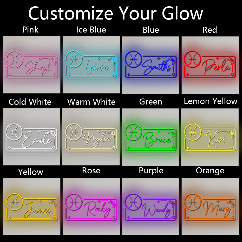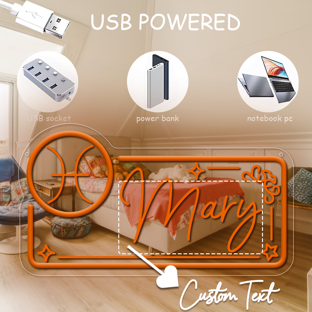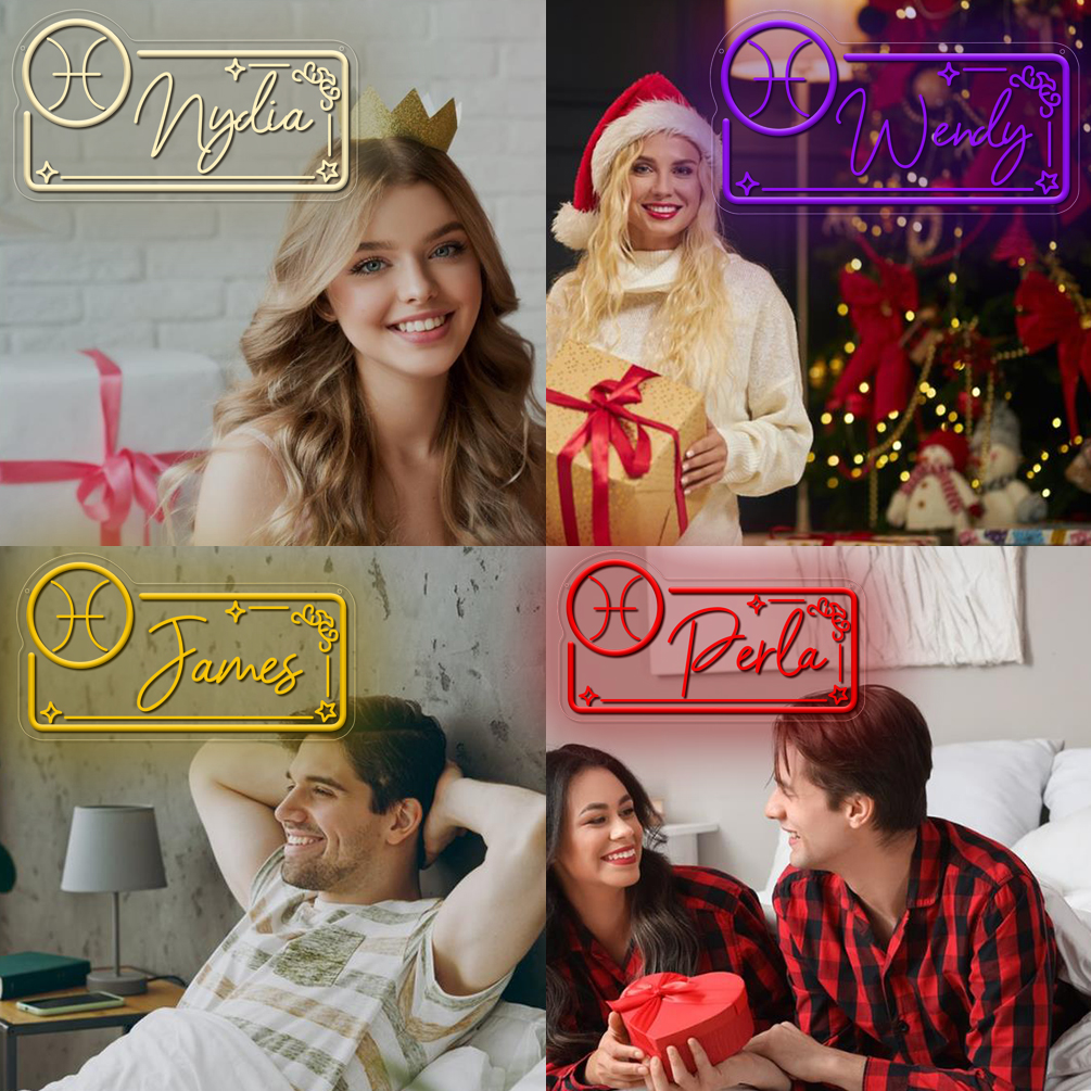 Customised neon sign with Pisces constellation pattern and name , 3D engraving, personalised LED neon light, suitable for wedding, children’s room, bedroom, living room decoration, unique and ideal gift for birthdays, weddings, graduation, children’s day, housewarming, etc.