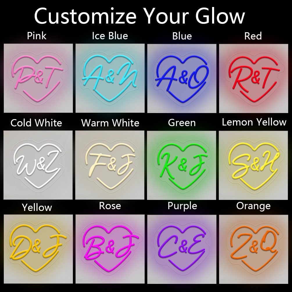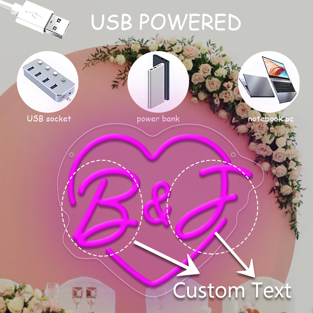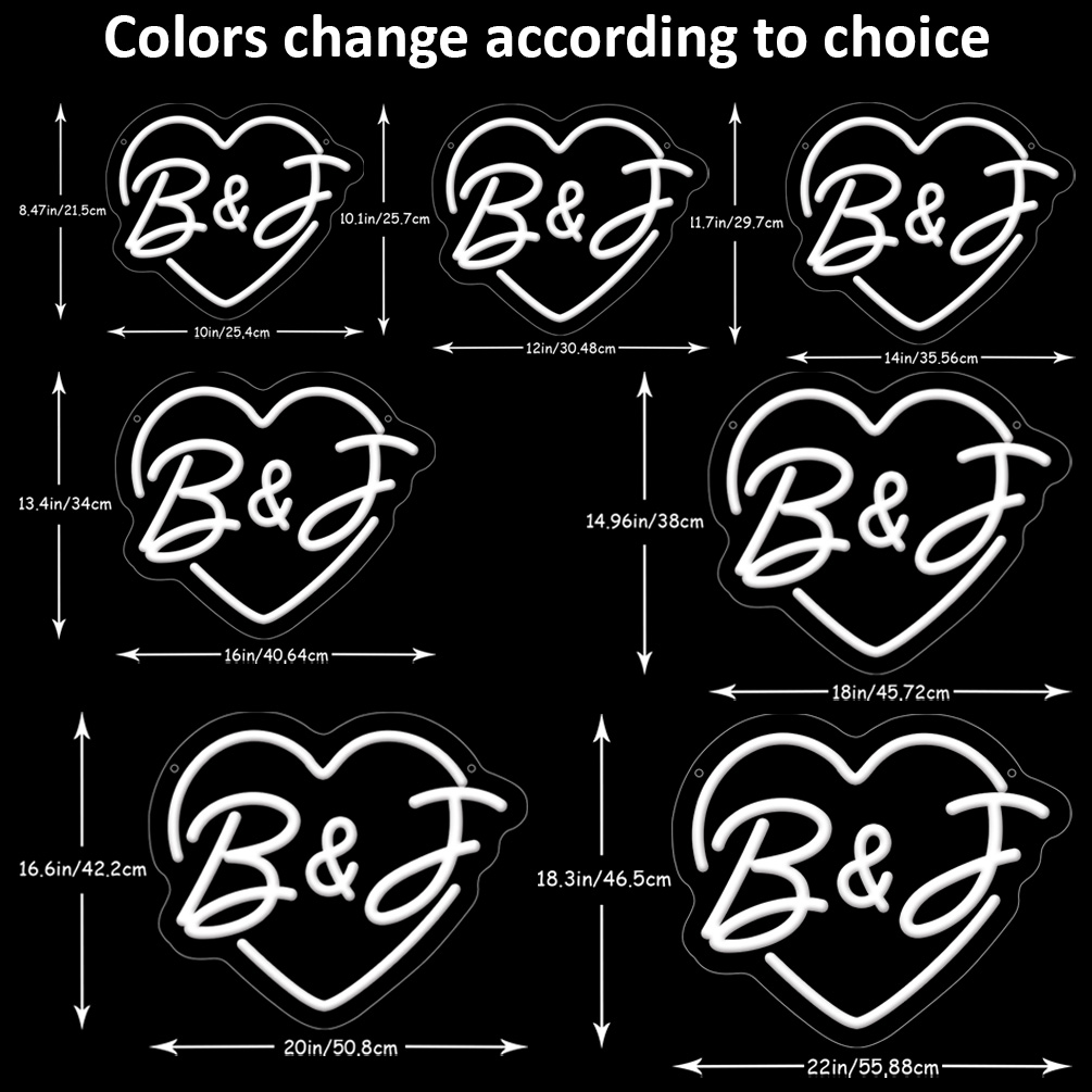 Customised single heart middle initial neon sign, personalised LED neon lights for weddings, events, parties, bedrooms, living rooms and home decor, unique and ideal gift for birthdays, weddings, ceremonies, Valentine’s Day, Children’s Day and more!