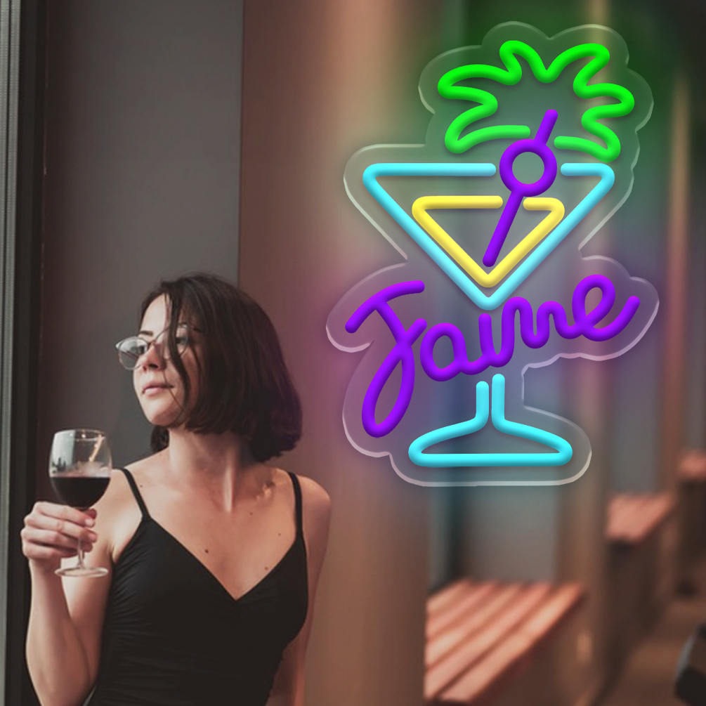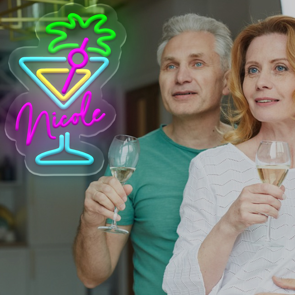 Customised wine glasses and name neon signs, personalised LED neon lighting perfect for games rooms, man caves, bars, parties, bedrooms, living rooms and home décor. An ideal unique gift for birthdays, celebrations, housewarmings and more!