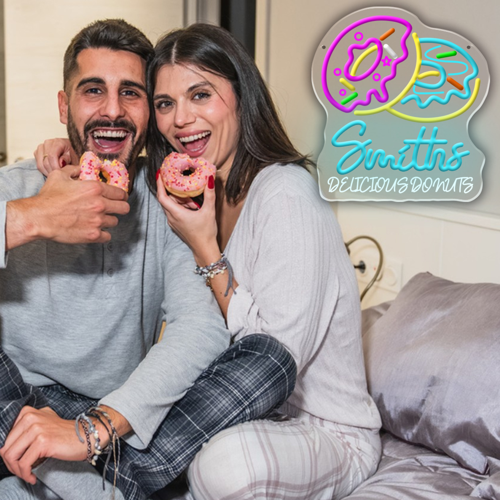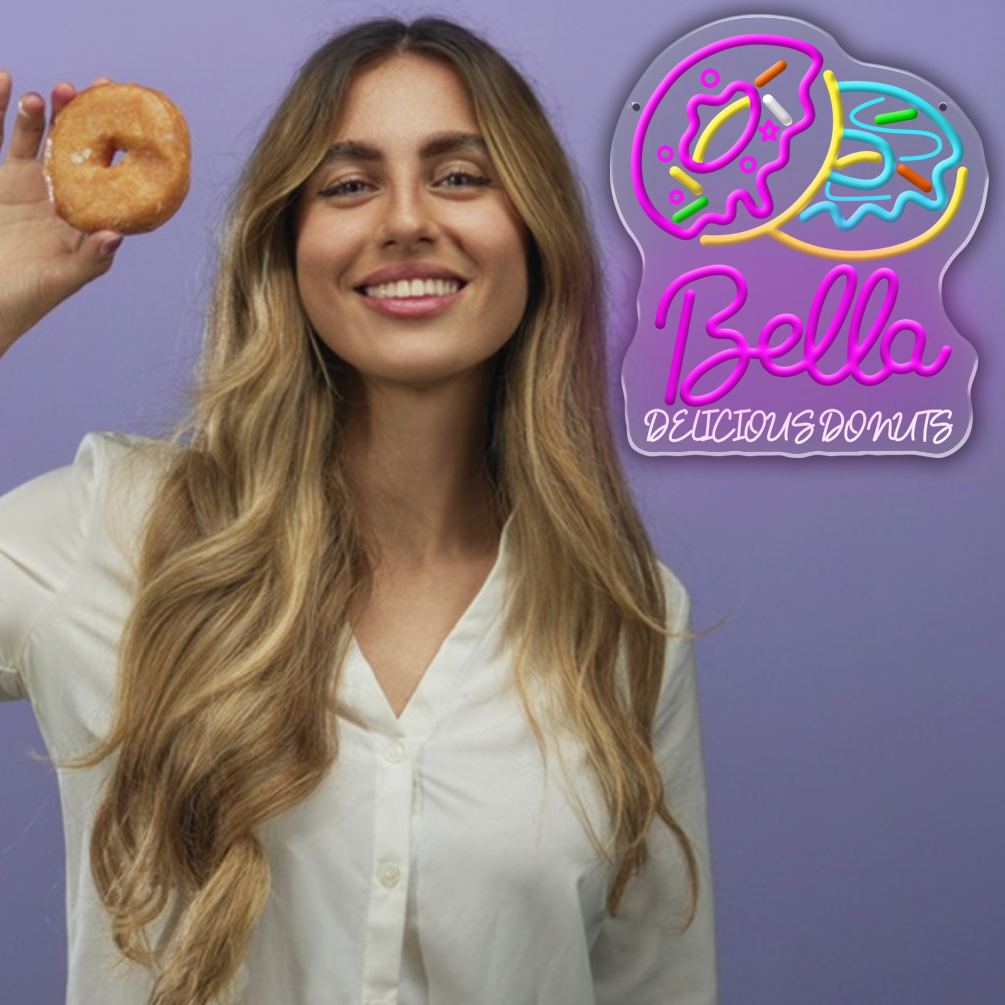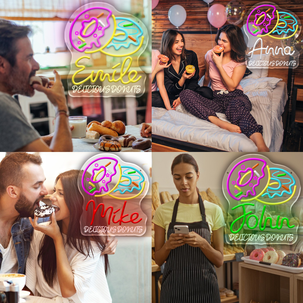 Customized donut pattern and name neon lights, 3D engraving, personalized LED neon lights for bakeries, theme parties, cafes, bars, fast food restaurants, birthday gifts and home kitchen decorations, a unique and ideal gift for bakeries, theme parties and kitchens!
