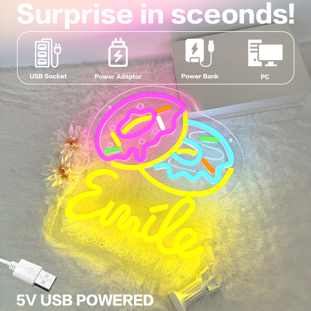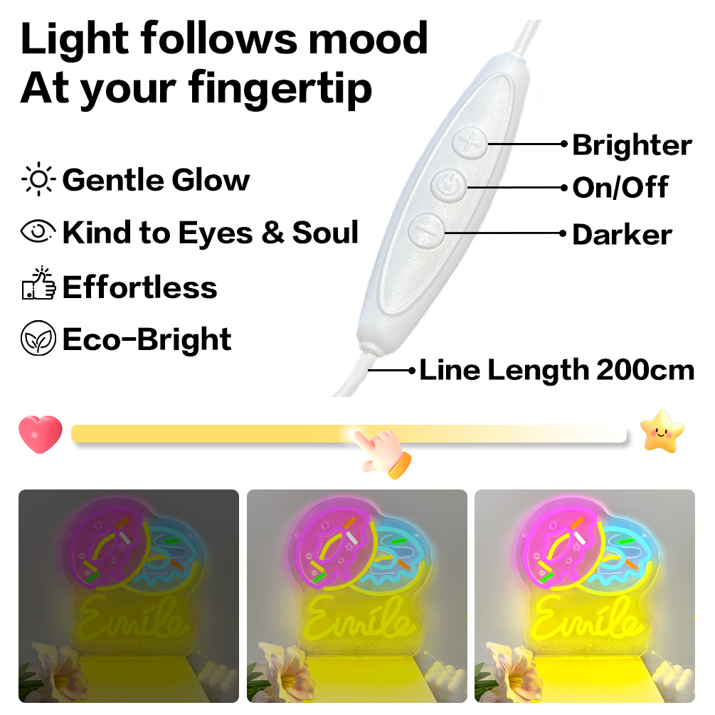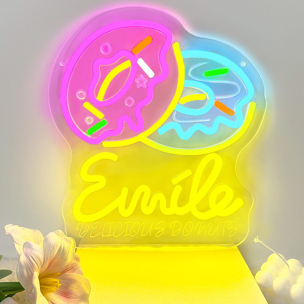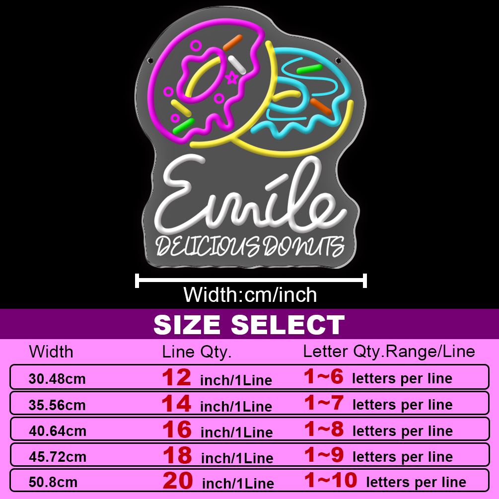 Customized donut pattern and name neon lights, 3D engraving, personalized LED neon lights for bakeries, theme parties, cafes, bars, fast food restaurants, birthday gifts and home kitchen decorations, a unique and ideal gift for bakeries, theme parties and kitchens!