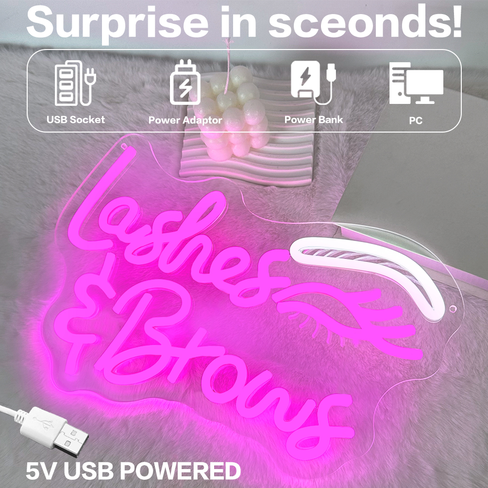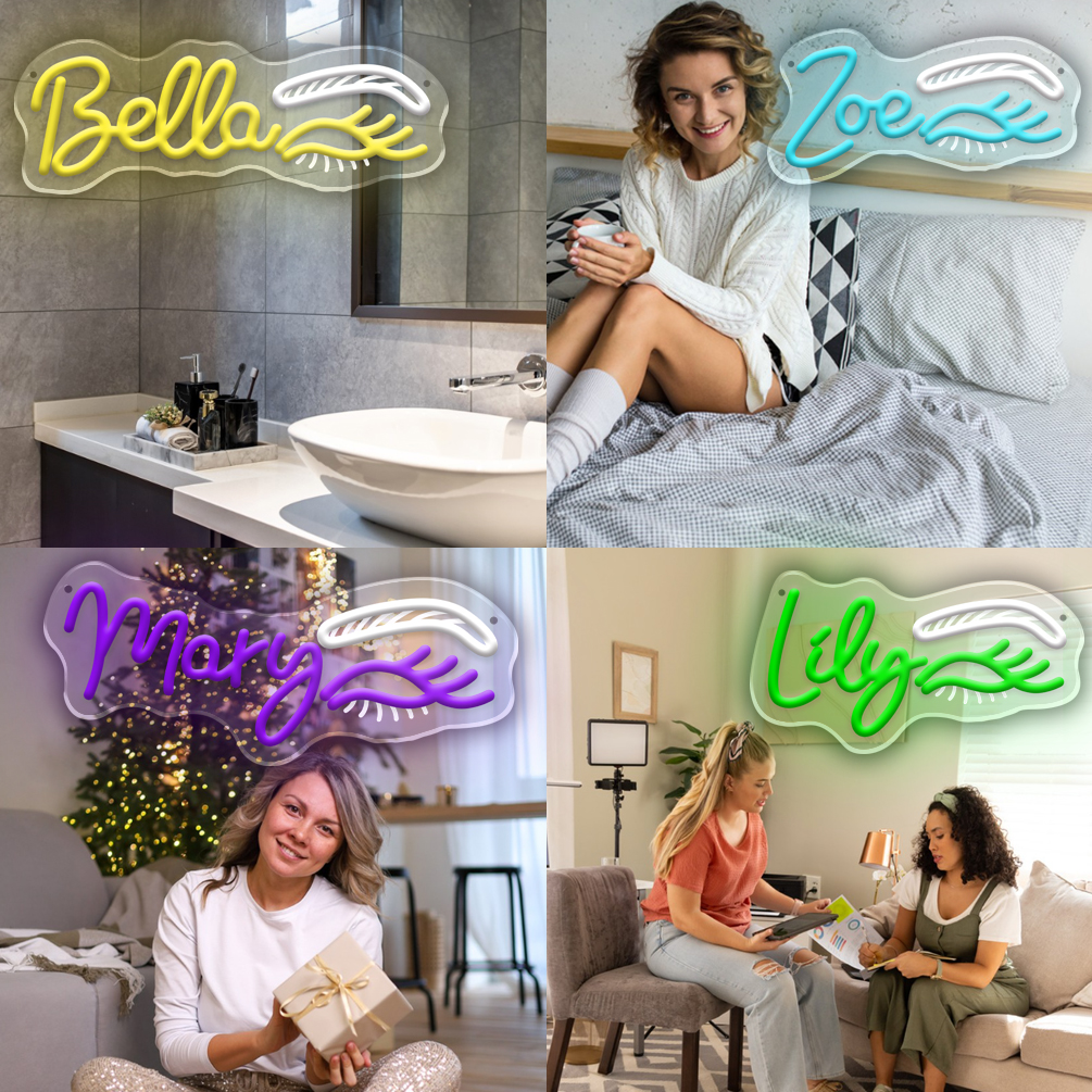 Customized eyebrow tattooing, eyelash patterns, and names in neon lights, personalized LED neon lights, suitable for beauty salons, eyebrow tattooing and eyelash studios, themed parties, bedroom and living room decorations, making them unique and ideal gifts for beauty salons, themed parties, and bedrooms!