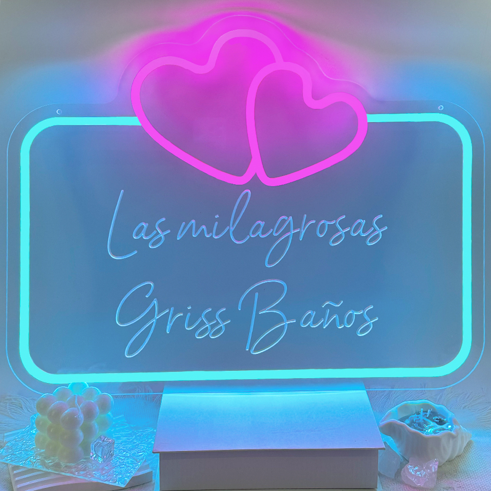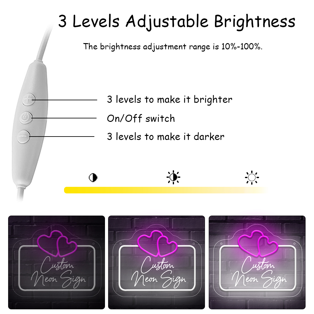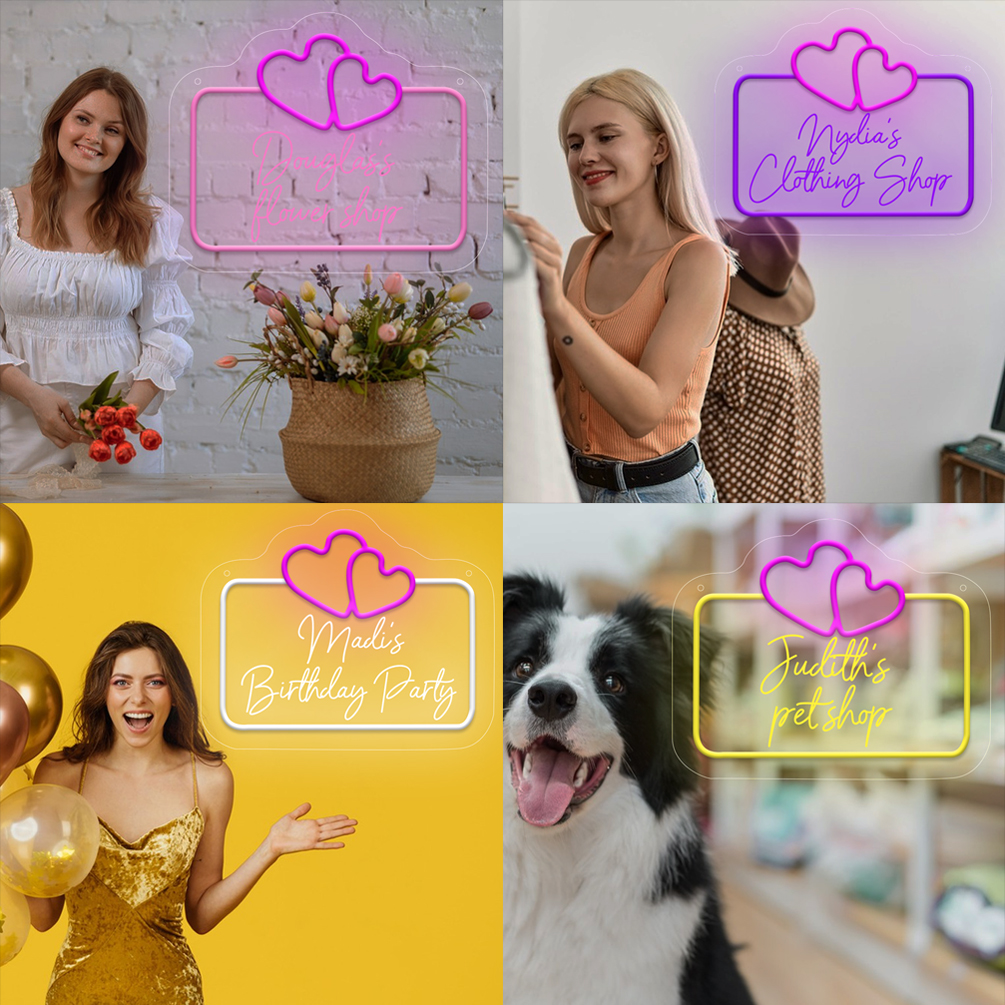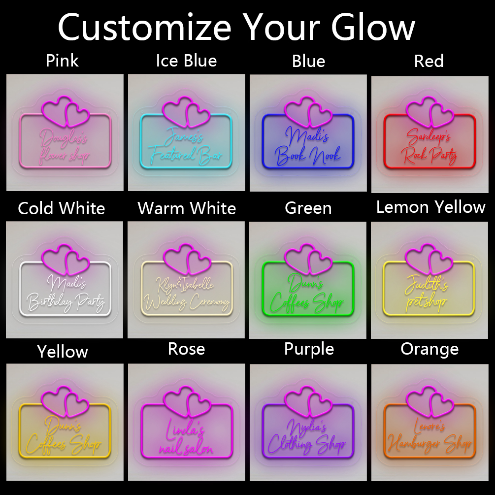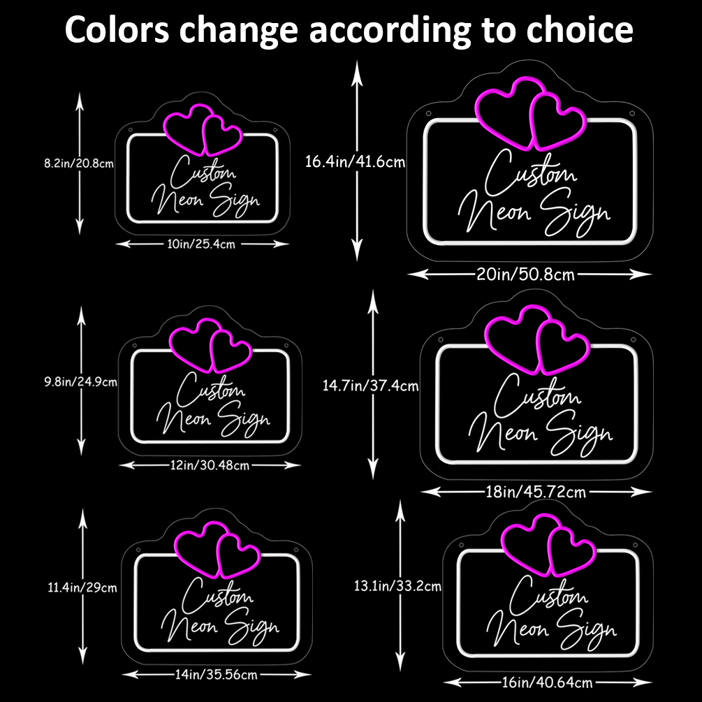 Double love heart shaped custom name neon sign with 3D engraving and personalised LED neon light, suitable for weddings, children’s rooms, bedrooms, living room decorations, unique and ideal gift for birthdays, weddings, graduations, children’s day, housewarming and more!
