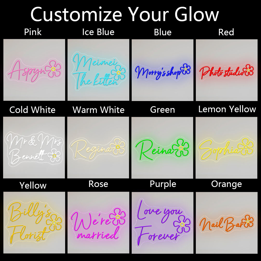 Flower pattern custom neon sign, personalised dimmable LED neon sign for home, birthdays, bars, weddings, party night lights and company logos or business signs, unique and ideal gifts for birthdays, weddings, graduations, festivals, housewarming and more!