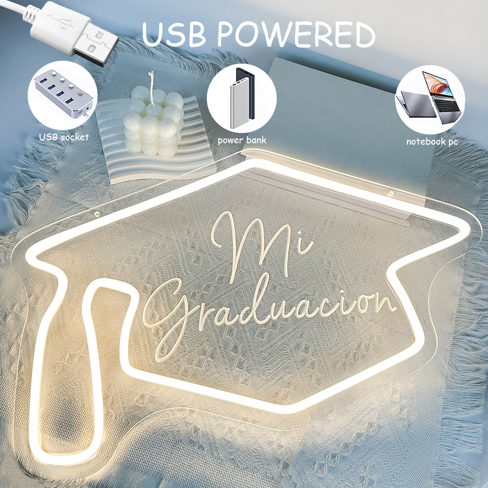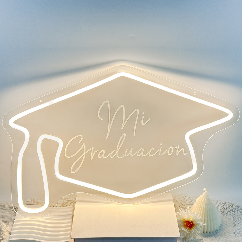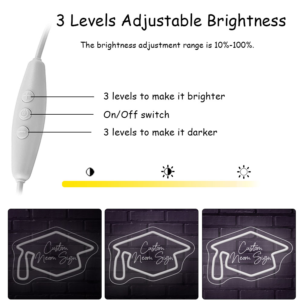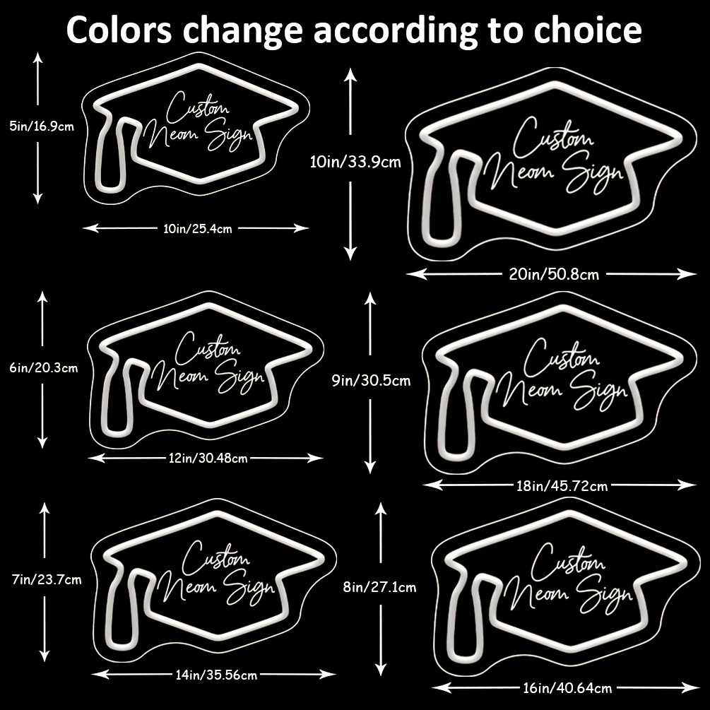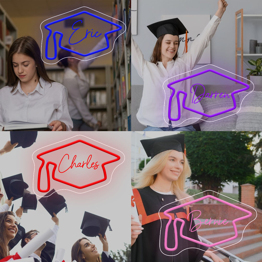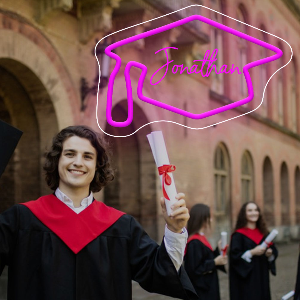 Graduation Cap Custom Neon Sign, 3D Engraving, Personalised Dimmable LED Neon Sign for Home Birthday Bar Wedding Party Night Lights and Company Logo or Business Sign, Birthday Gift Name Neon