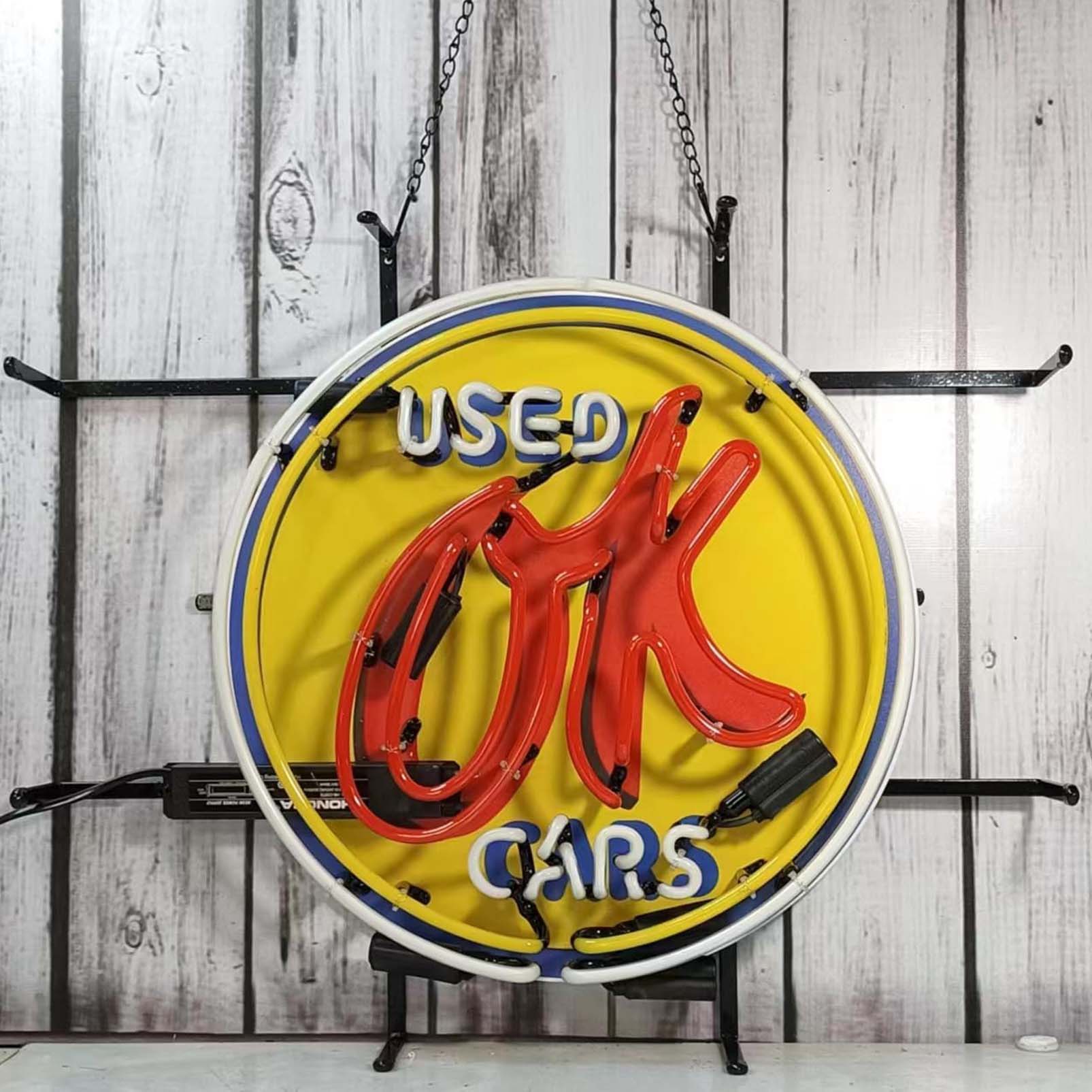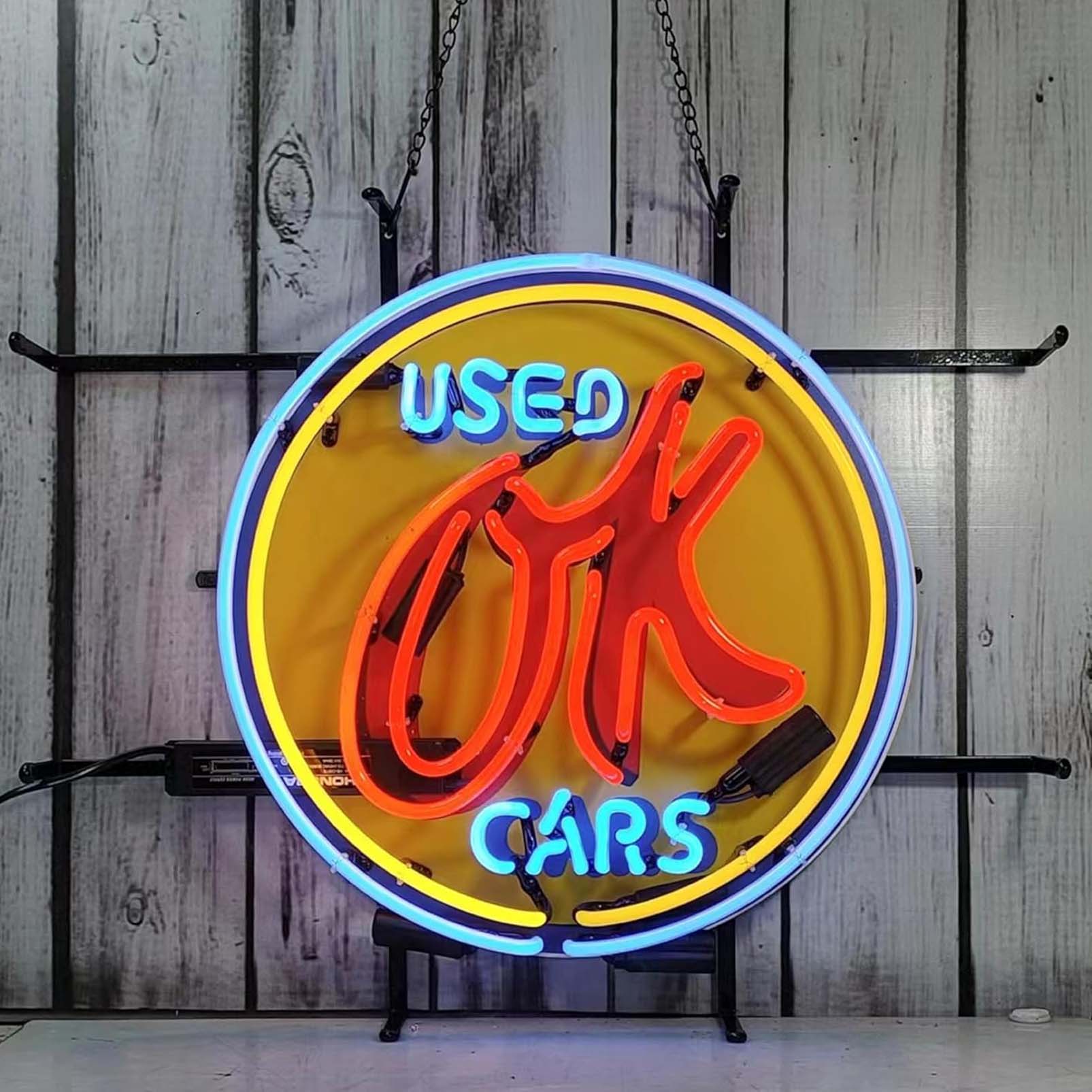High Quality Ok Used Cars Teen Signs, HD Inkjet Graphic Printed Boards, Large Glowing Glass Tube Neon LED Signs for Office, Party, Coffee Shop, Bar, Birthday, Men’s Cave, Home and Event Wall Art Decoration.