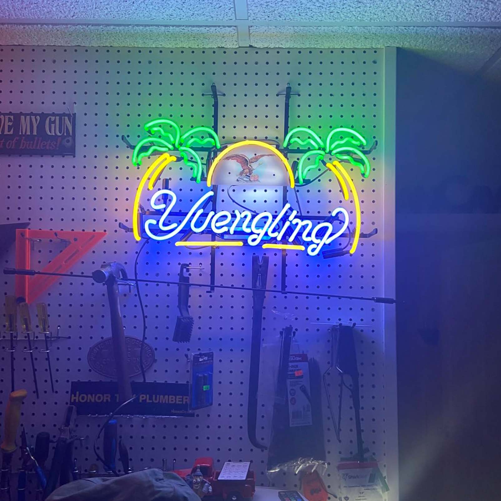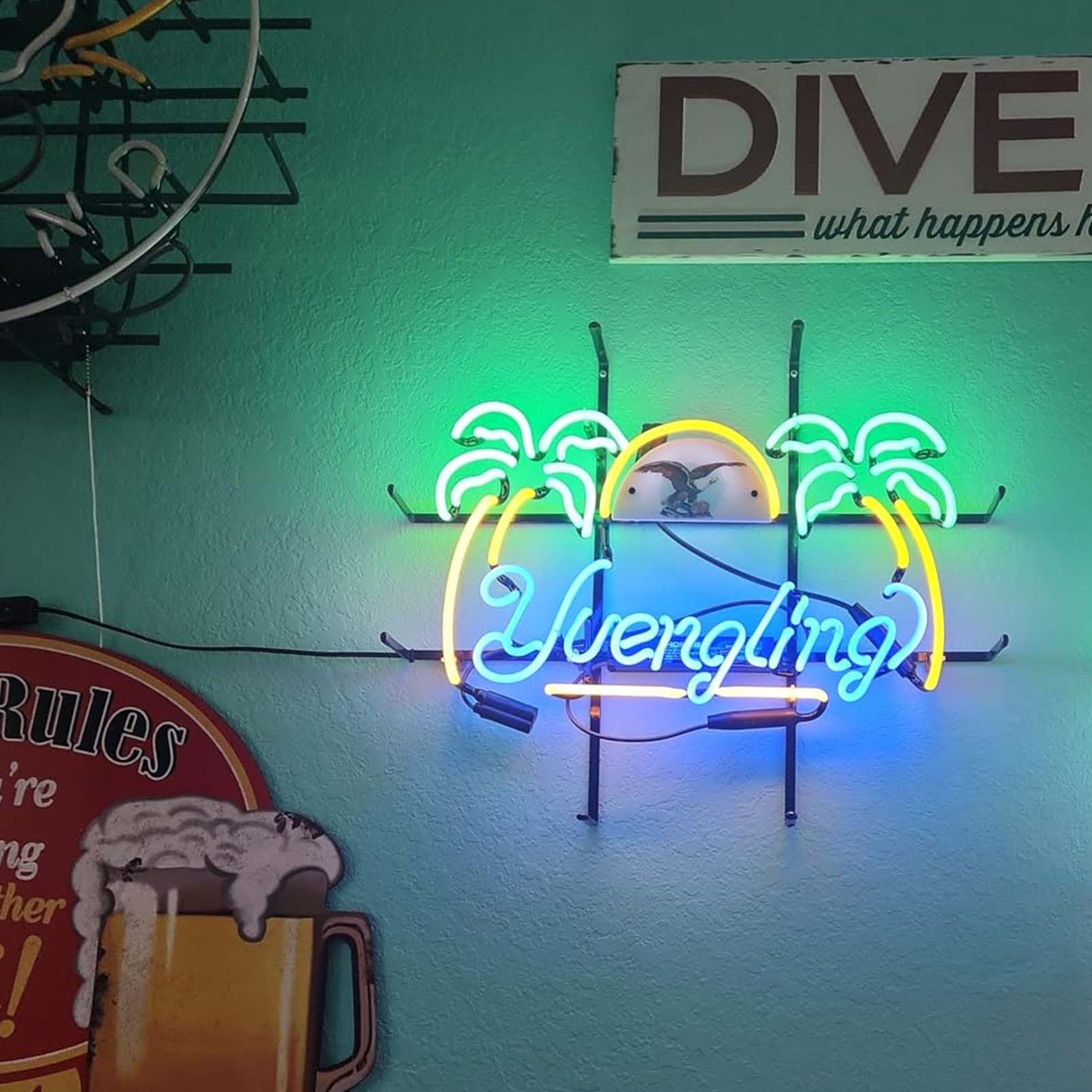 High Quality Super Bright COONidos Yuenglings Eagle Palm Tree Sign, HD Inkjet Graphic Printed Board, Large Glowing Glass Tube Neon LED Signs for Office, Party, Coffee Shop, Bar, Birthday, Men’s Cave, Home and Event Wall Art Decoration.