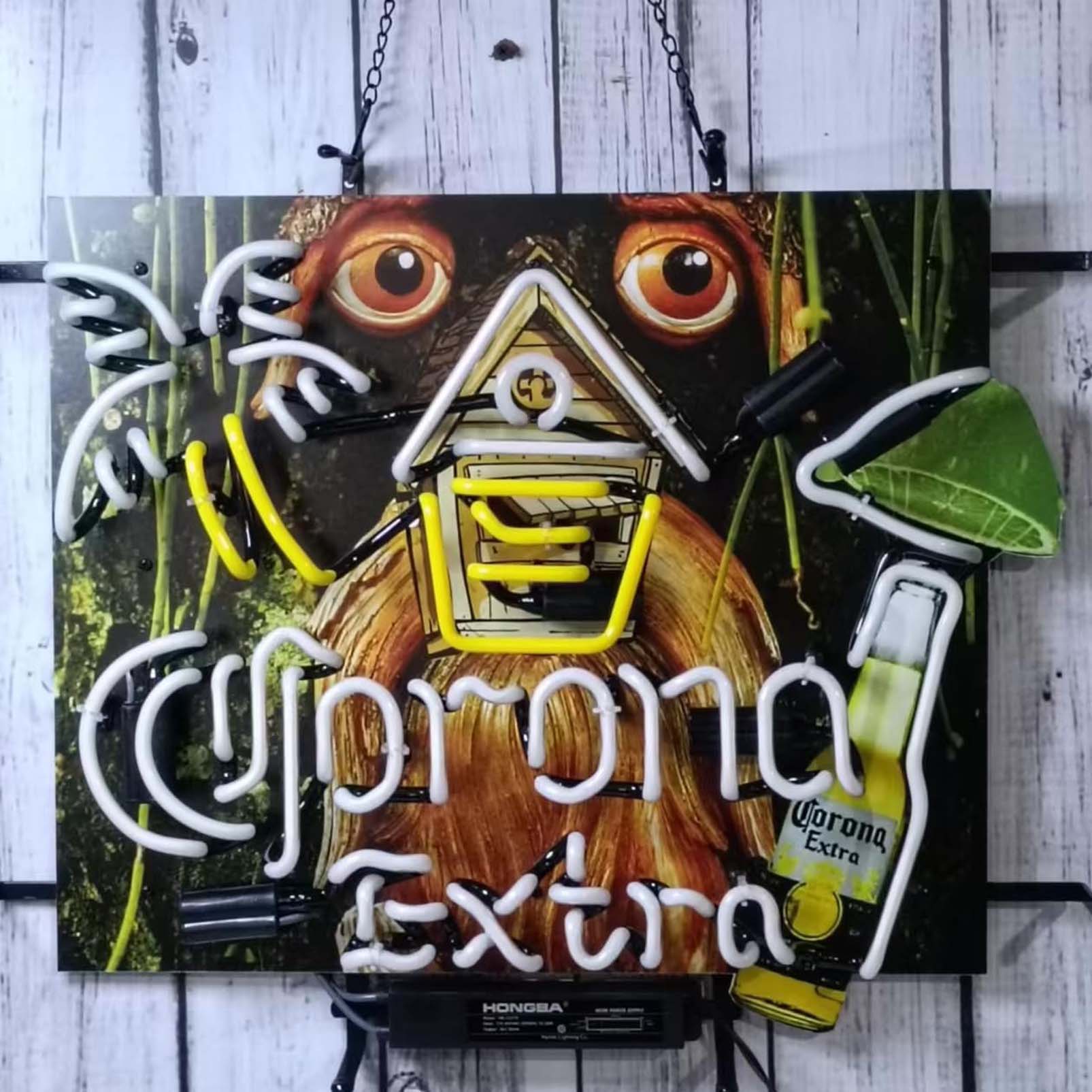 High quality super bright Corona Extra Beer Palm Tree House sign with HD inkjet graphic print board, large glowing glass tube neon LED sign for office, party, coffee shop, bar, birthday, man cave, home and event wall art decoration.