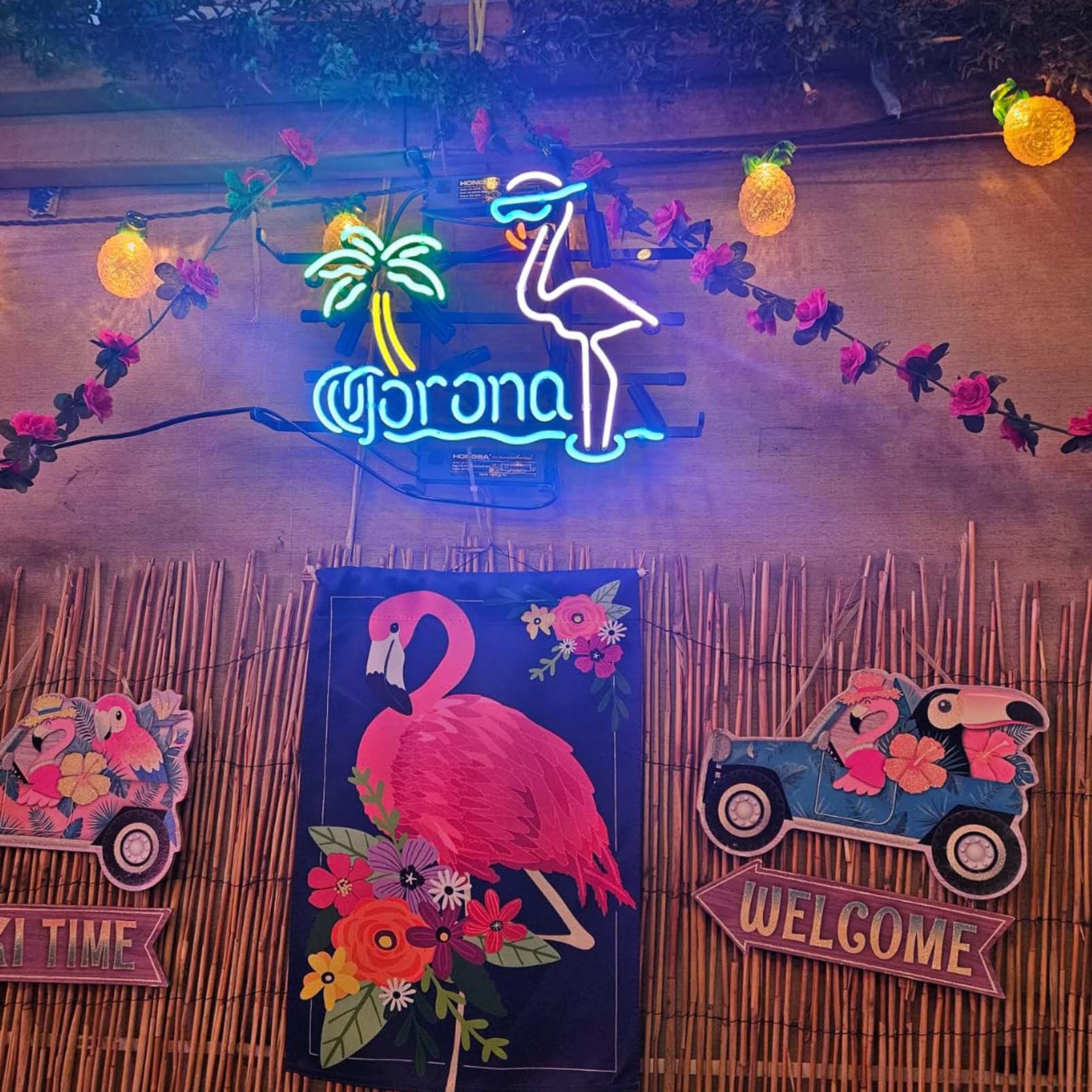 High Quality Super Bright Corona Flamingo Palm Tree Sign, Large Glowing Glass Tube Neon LED Signs for offices, parties, coffee shops, bars, birthdays, men’s caves, home and event wall art decor.