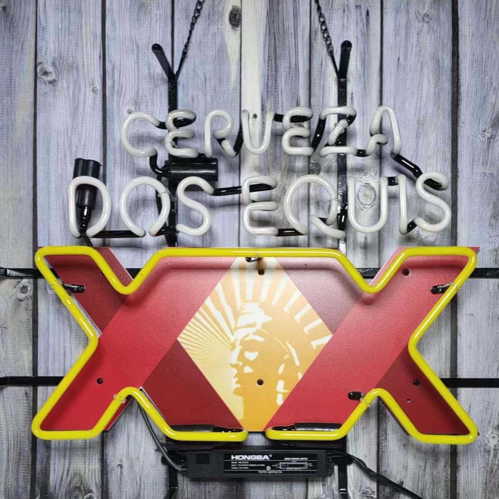 High Quality Super Bright Dos Dquis Bright Red Xx Mexican Beer Sign, High Definition Inkjet Graphic Printed Board, Large Glowing Glass Tube Neon LED Sign for Office, Party, Coffee Shop, Bar, Birthday, Men’s Cave, Home and Event Wall Art Decoration.