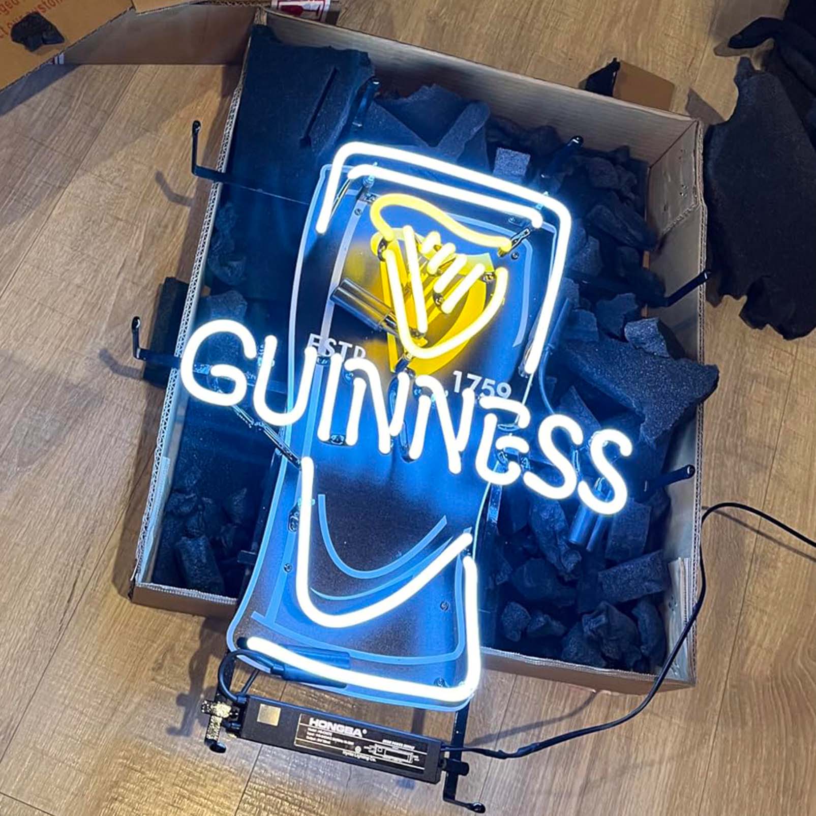 High quality super bright Guinness Harp Irish Sign, HD inkjet graphic printing board, large glowing glass tube neon LED sign for office, party, coffee shop, bar, birthday, man cave, home and event wall art decoration.