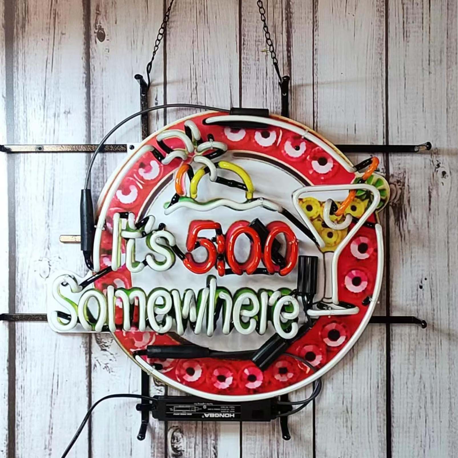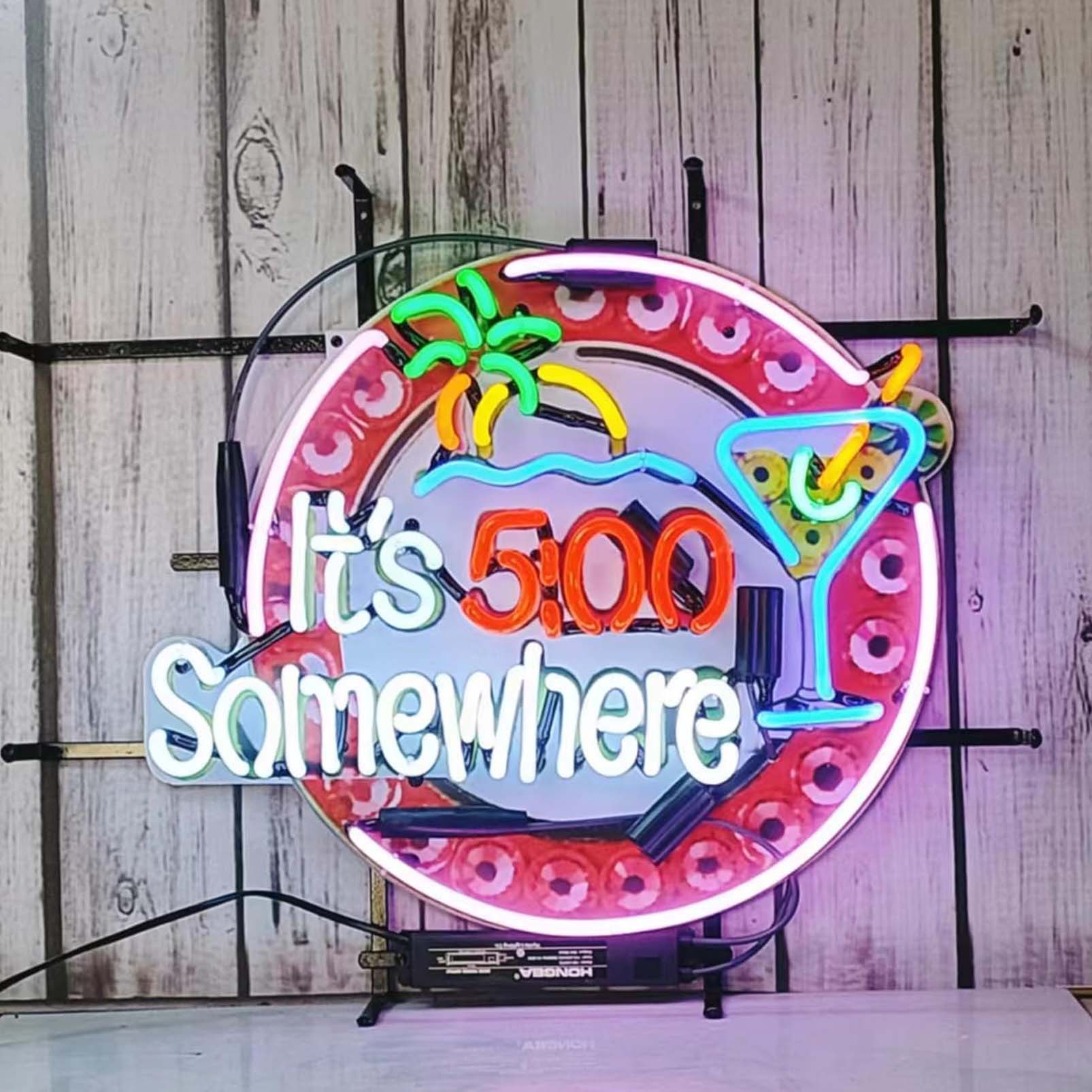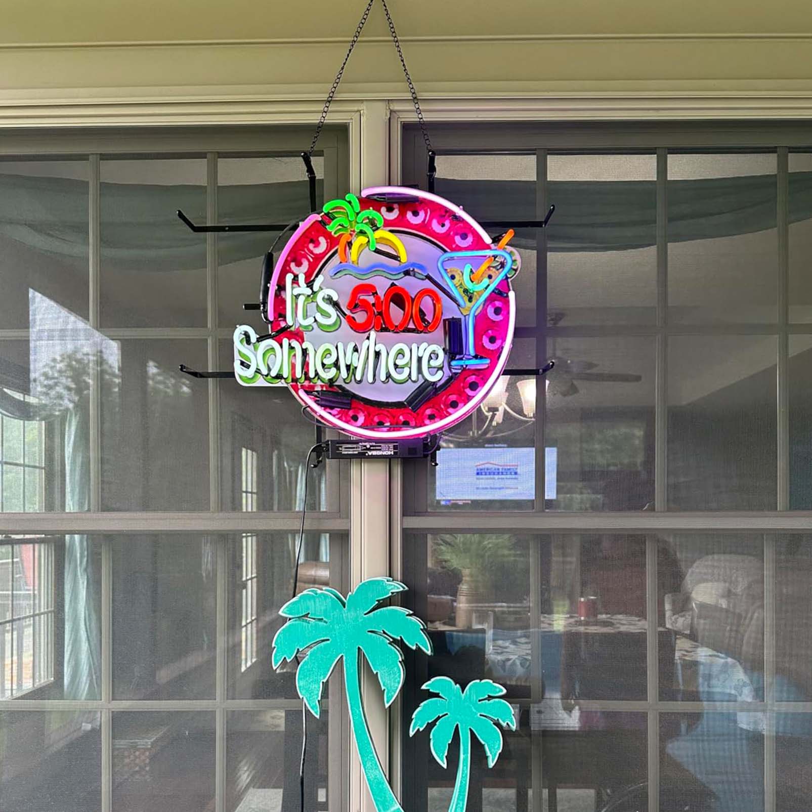 High Quality Super Bright It’s 5:00 Somewhere Palm Tree Martini Sign, High Definition Inkjet Graphic Printed Board, Large Glowing Glass Tube Neon LED Sign for Office, Party, Coffee Shop, Bar, Birthday, Men’s Cave, Home and Event Wall Art Decoration.