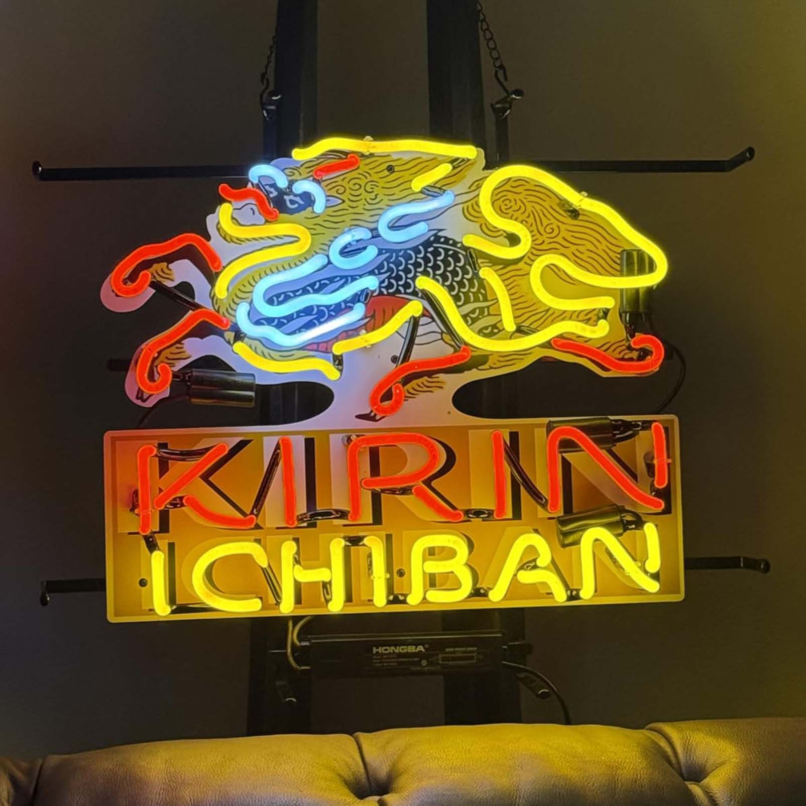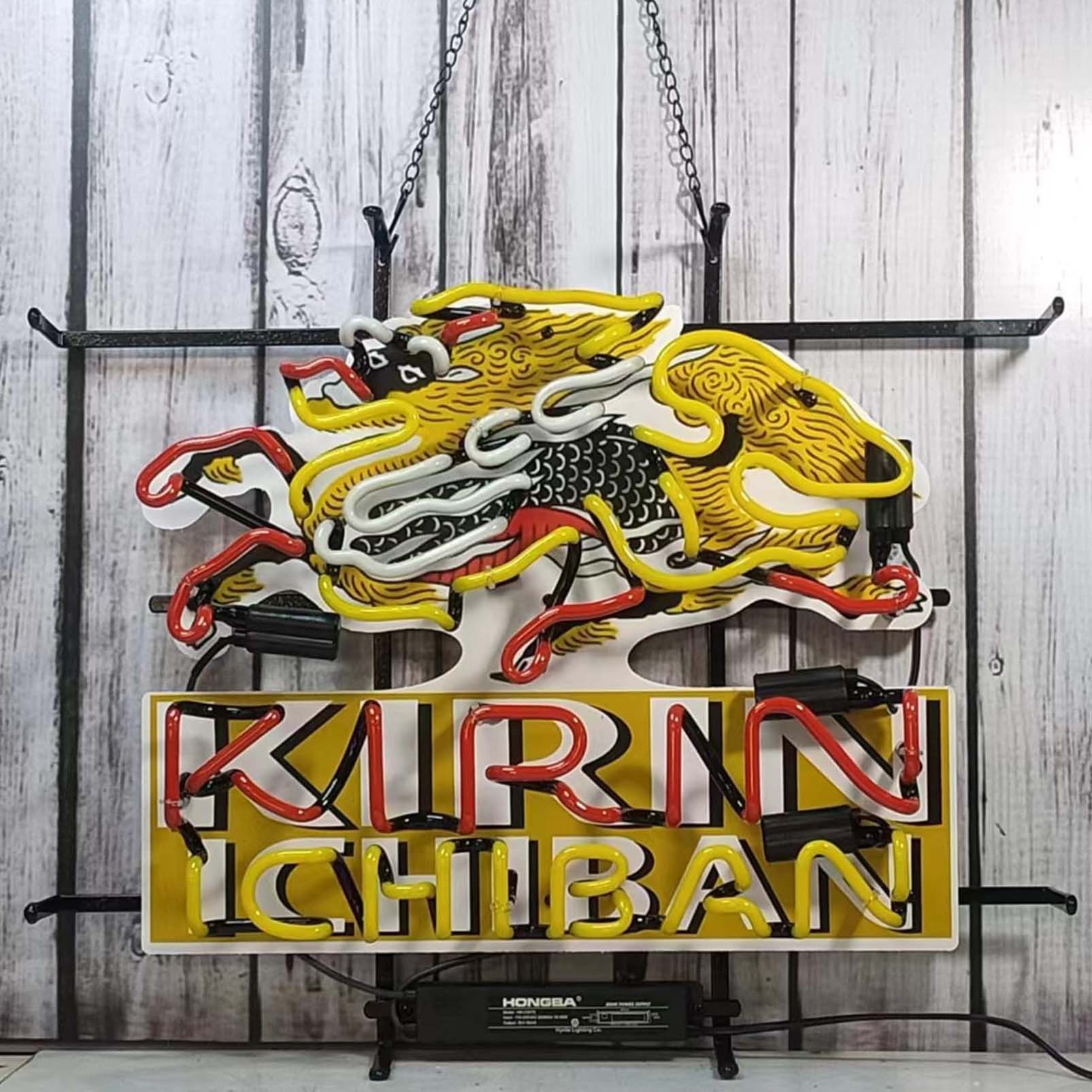 High quality super bright Kirin I CHIBAN sign with HD inkjet graphic print board, large glowing glass tube neon LED sign for office, party, coffee shop, bar, birthday, man cave, home and event wall art decoration.