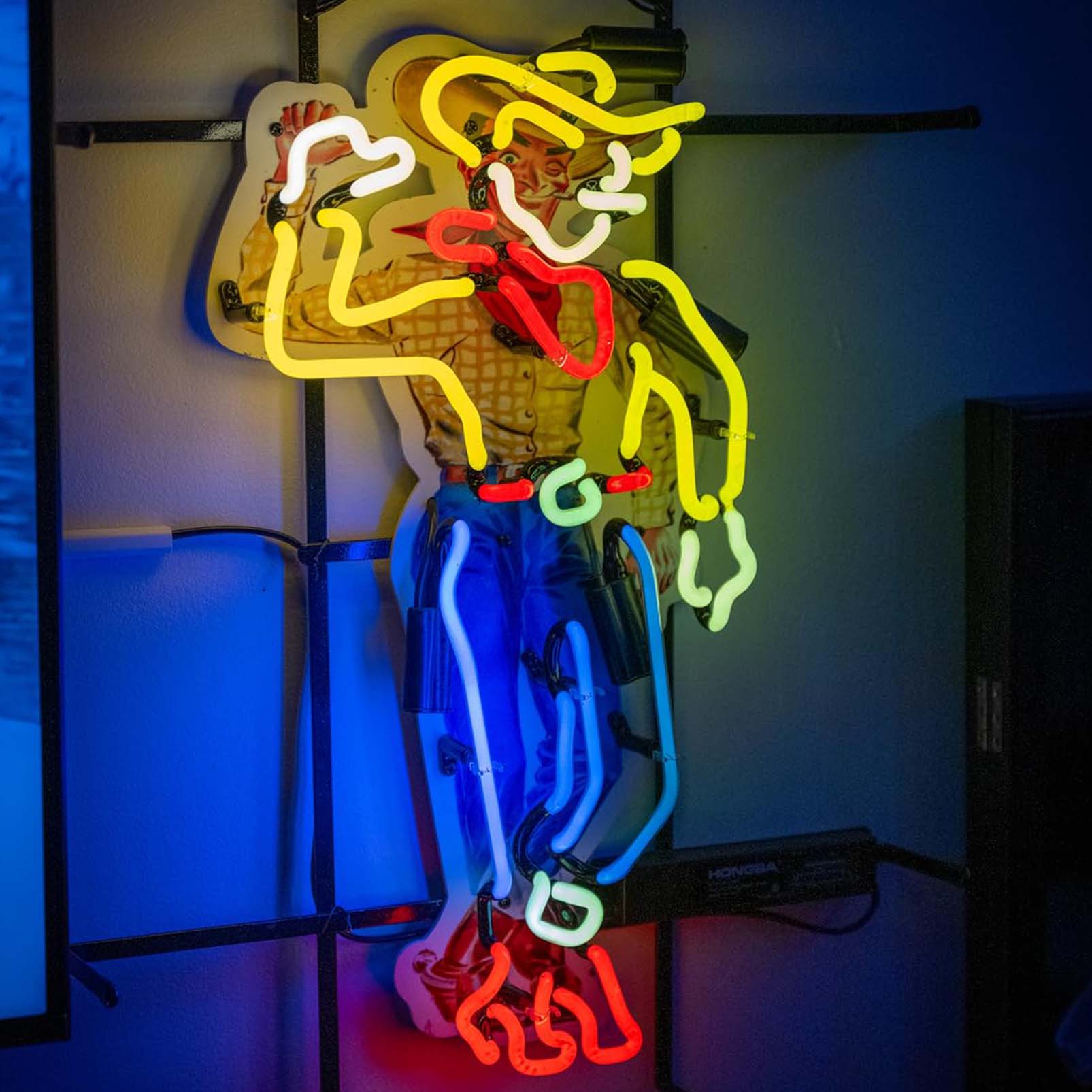 High quality super bright Las Ve Gas Cowboy sign with HD inkjet graphic print board, large glowing glass tube neon LED sign for office, party, coffee shop, bar, birthday, man cave, home and event wall art decoration.