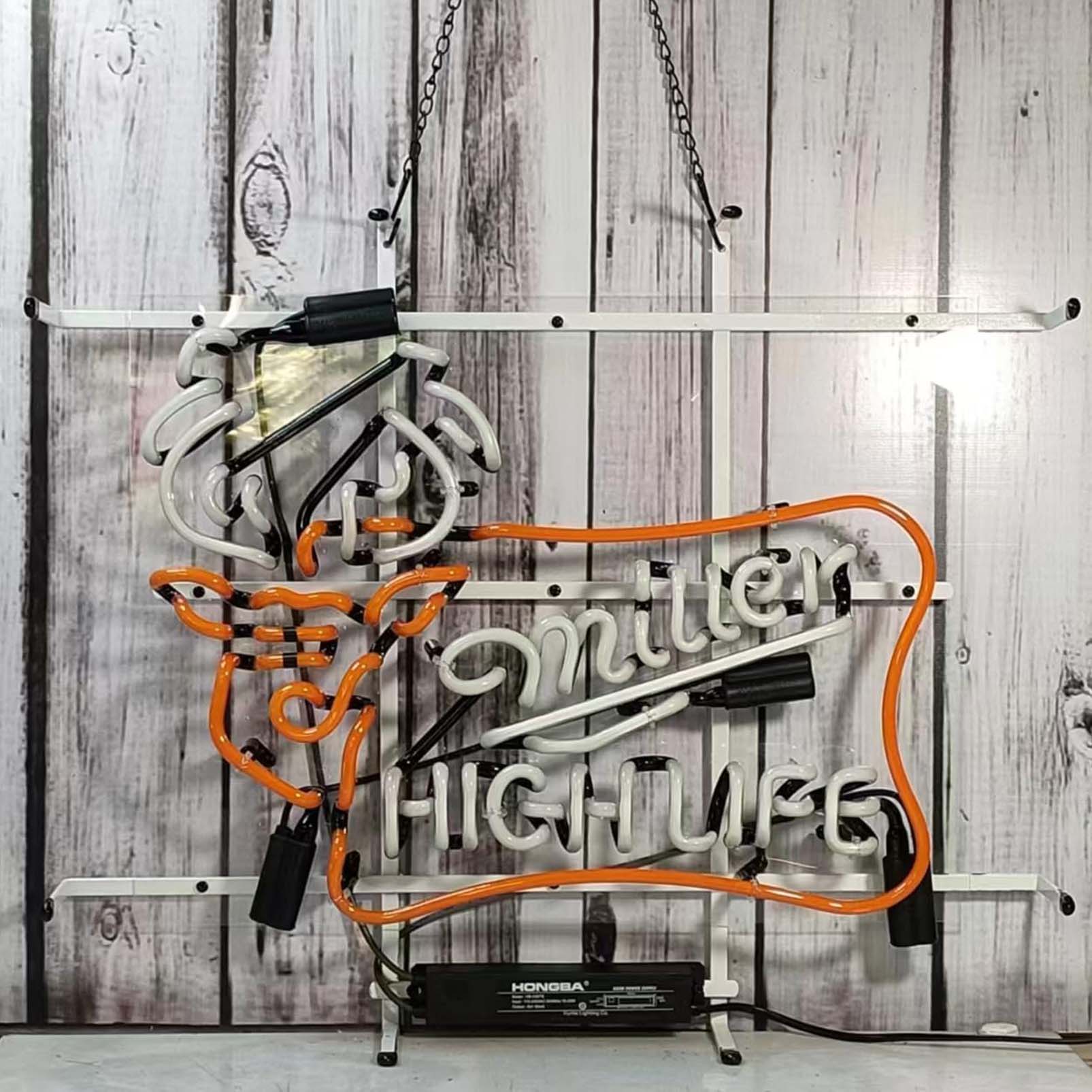 High Quality Super Bright Miller High Life Outdoor Deer Sign, Large Glowing Glass Tube Neon LED Sign for Office, Party, Coffee Shop, Bar, Birthday, Men’s Cave, Home and Event Wall Art Decoration.