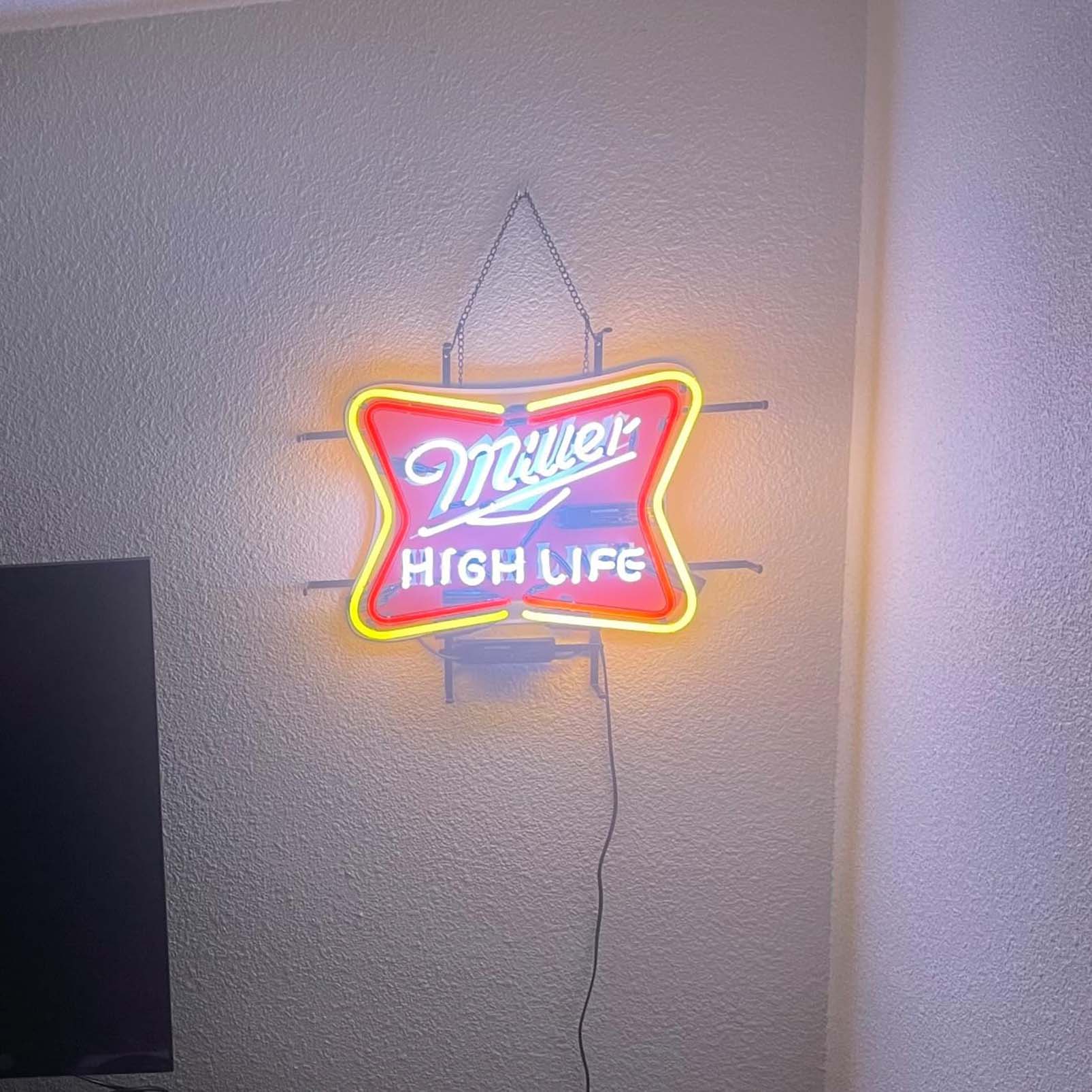 High Quality Super Bright Miller High Lifetime Beer Sign, HD Inkjet Graphic Printed Board, Large Glowing Glass Tube Neon LED Signs for Office, Party, Coffee Shop, Bar, Birthday, Men’s Cave, Home and Event Wall Art Decoration.
