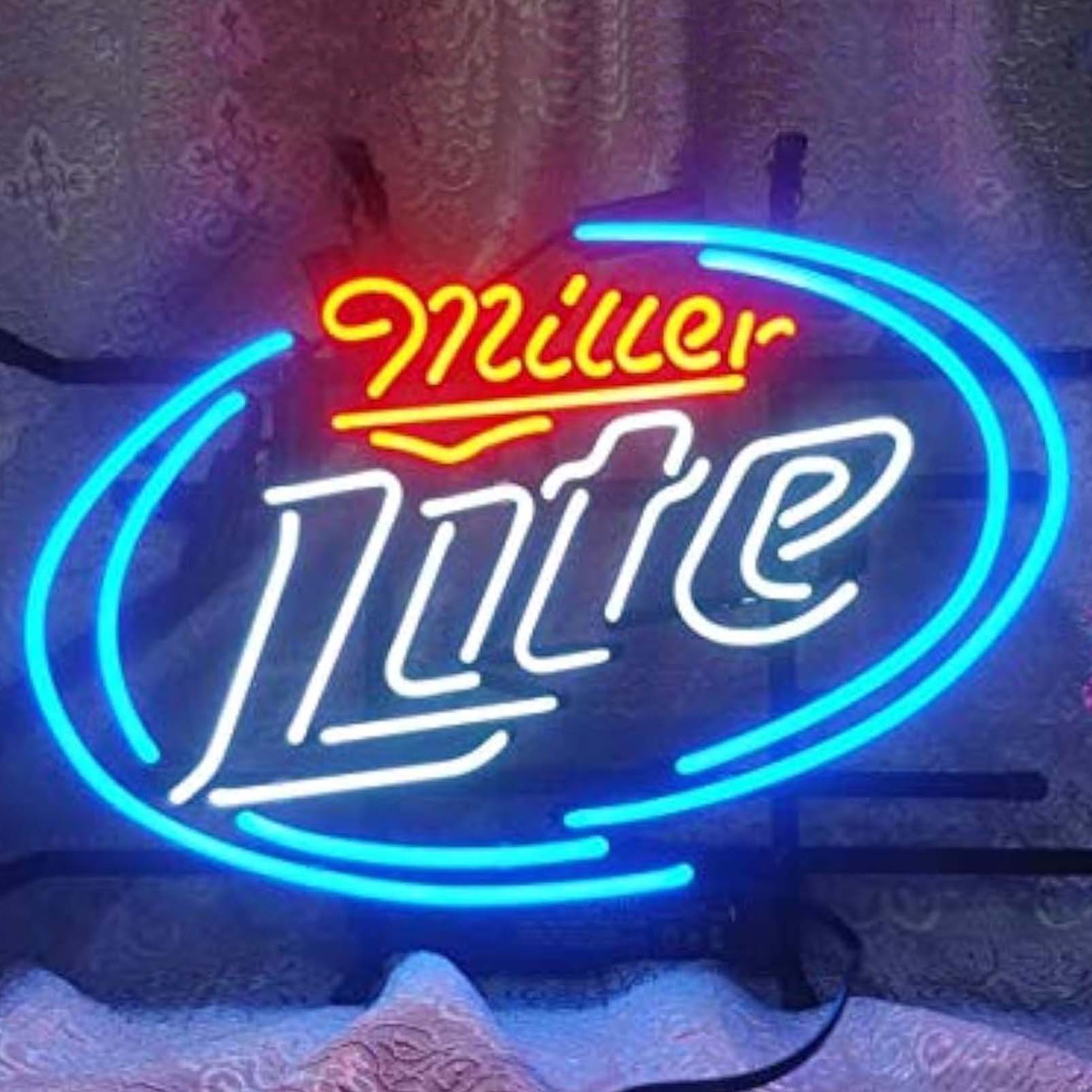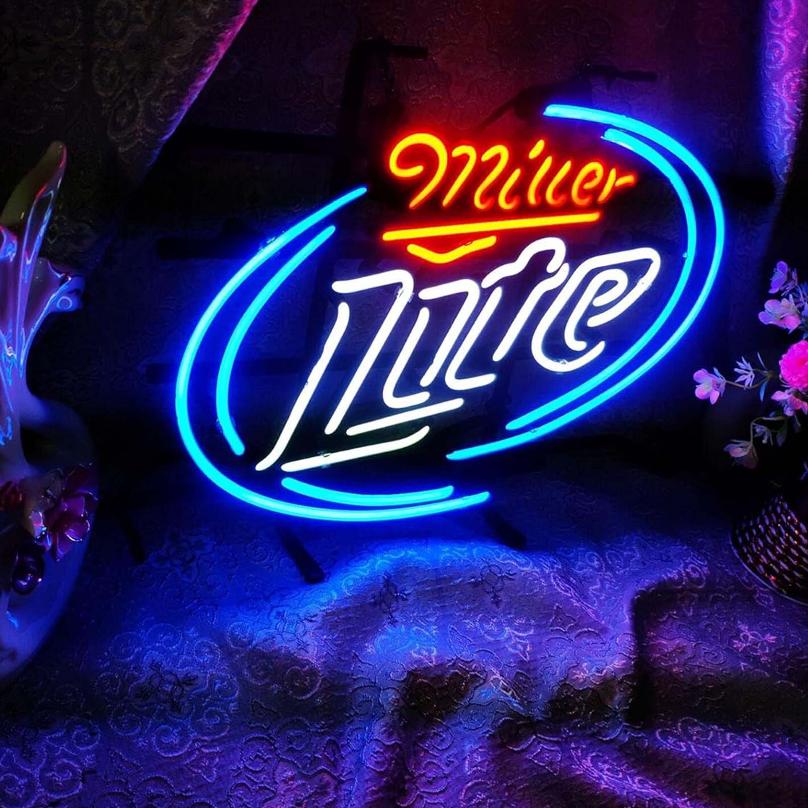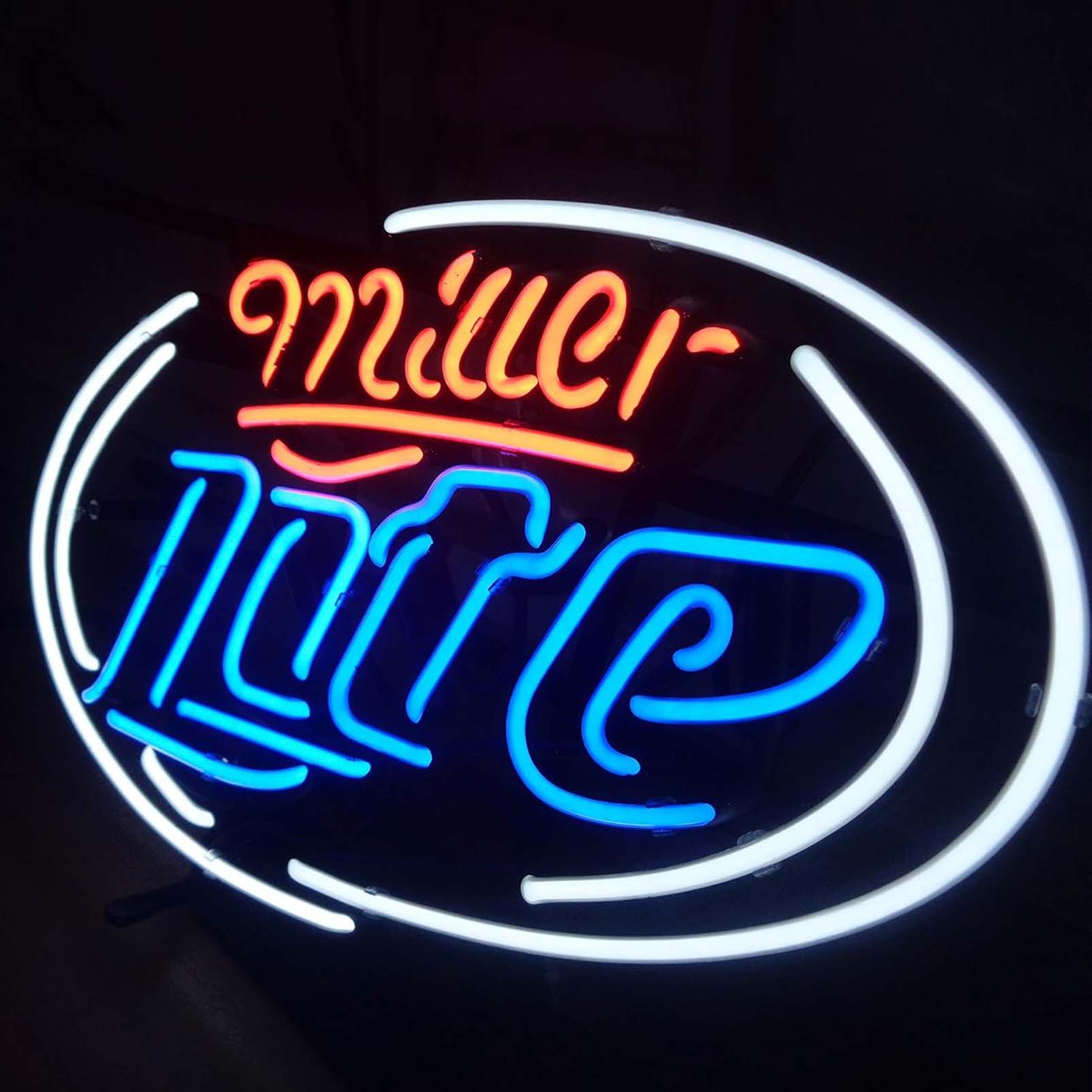 High quality super bright Miller lite sign, large glowing glass tube neon LED sign for office, party, coffee shop, bar, birthday, man cave, home and event wall art decoration.