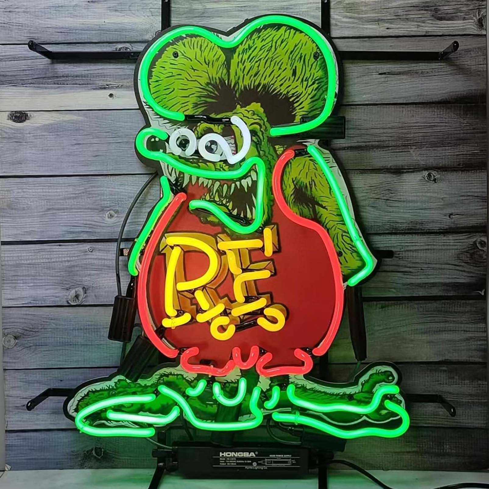 High Quality Super Bright Open Letter Display Beer Bar Mouse Sign, HD Jet Graphic Printed Board, Large Brightness Glowing Glass Tube Neon LED Sign for Office, Party, Coffee Shop, Bar, Birthday, Men’s Cave, Home and Event Wall Art Decoration.