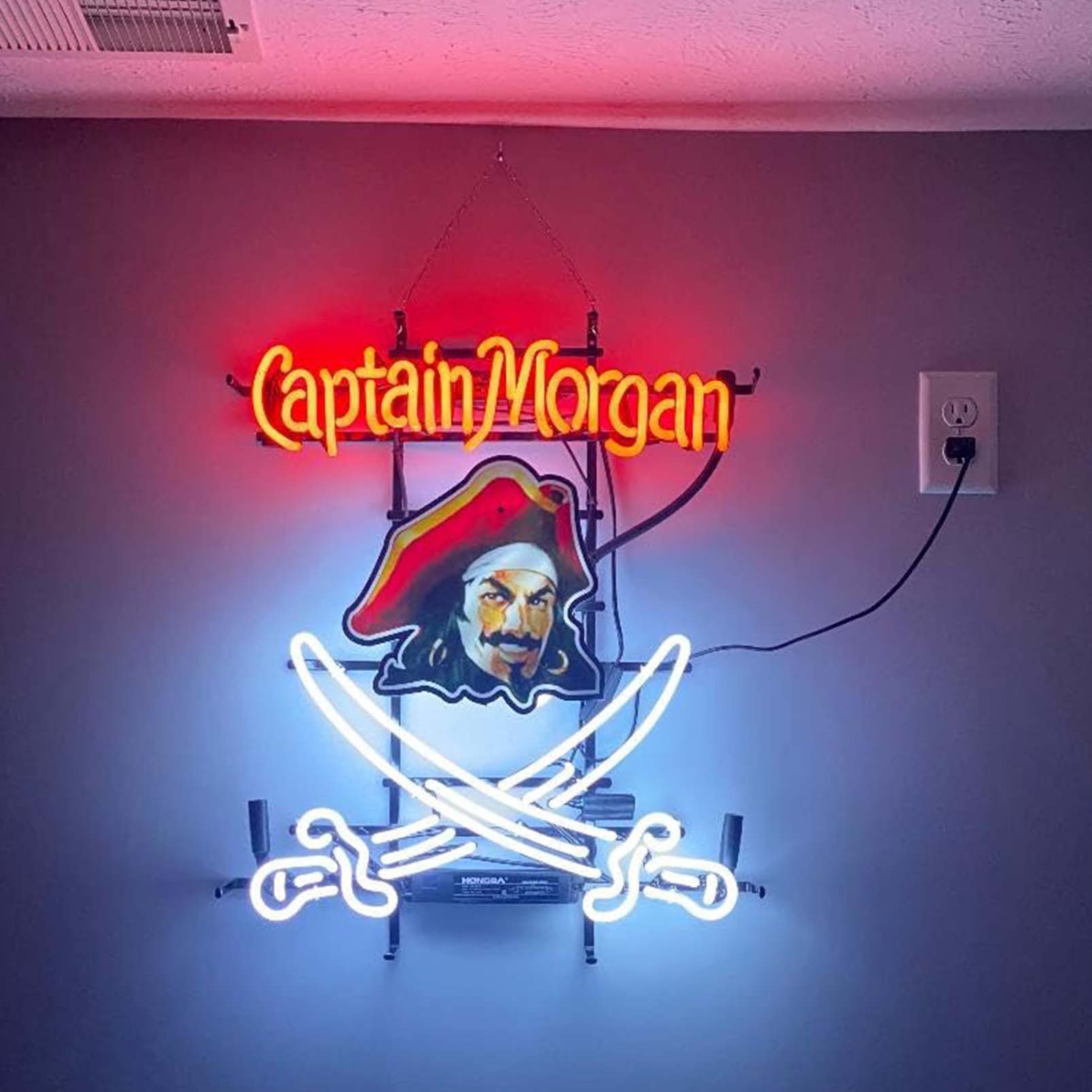 High Quality Super Bright Open Letter Display Mor gans Rum,HD Jet Graphic Printed Board, Large Bright Illuminated Glass Tube Neon LED Sign for Office, Party, Coffee Shop, Bar, Birthday, Men’s Cave, Home and Event Wall Art Decoration.60.96 X 50.80 cm