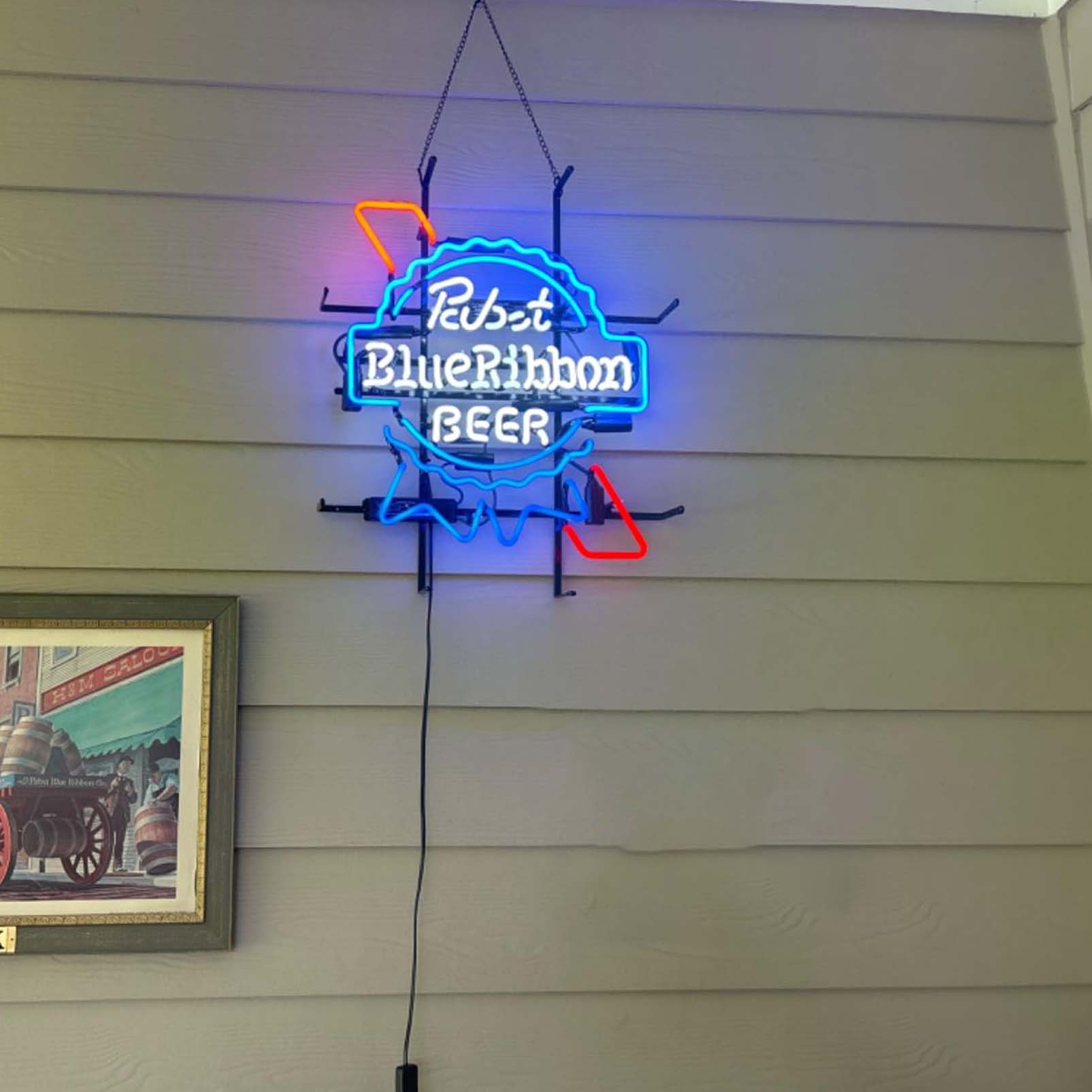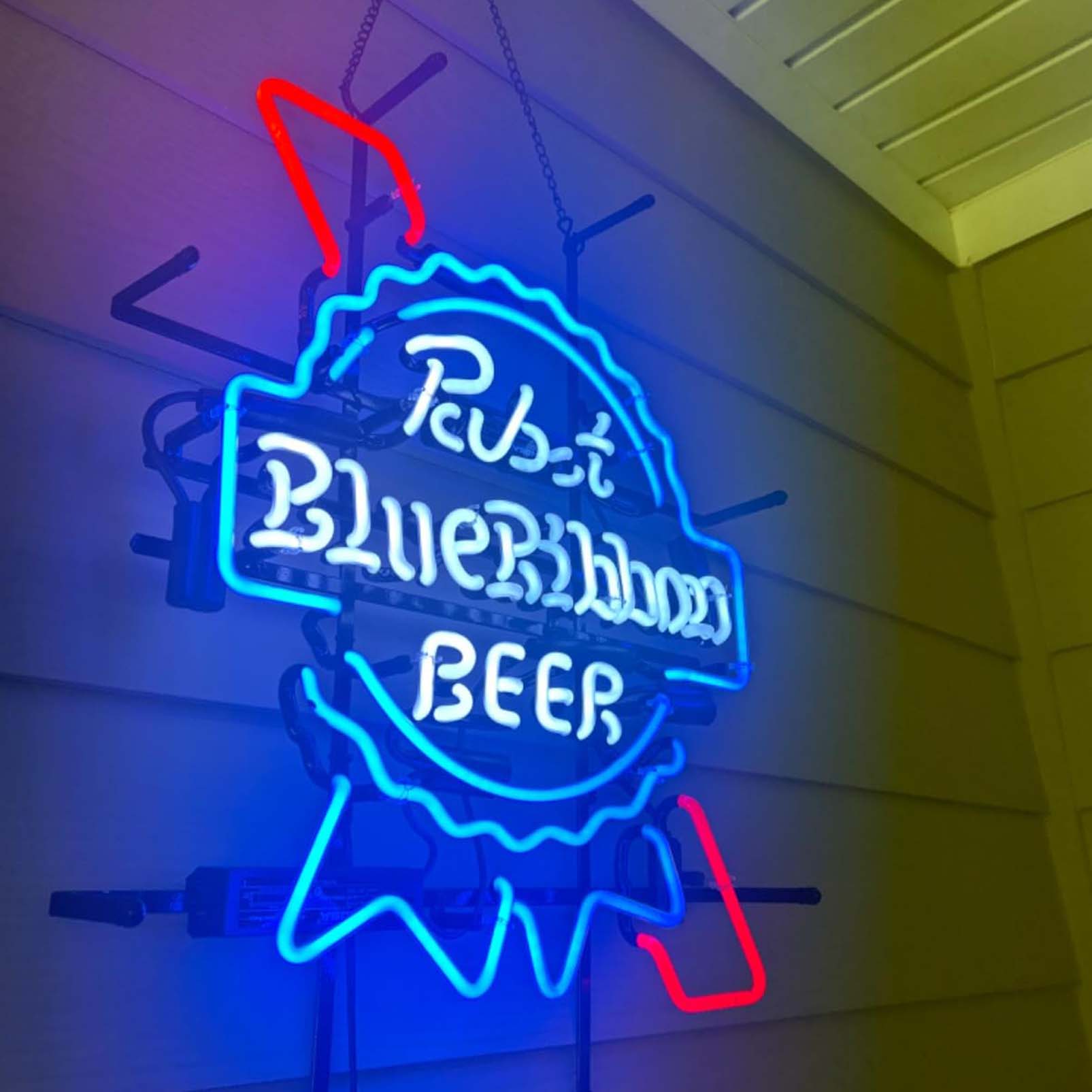 High Quality Super Bright Pabsts Blue Ribbon Sign, Large Glowing Glass Tube Neon LED Sign for Office, Party, Coffee Shop, Bar, Birthday, Men’s Cave, Home and Event Wall Art Decoration.