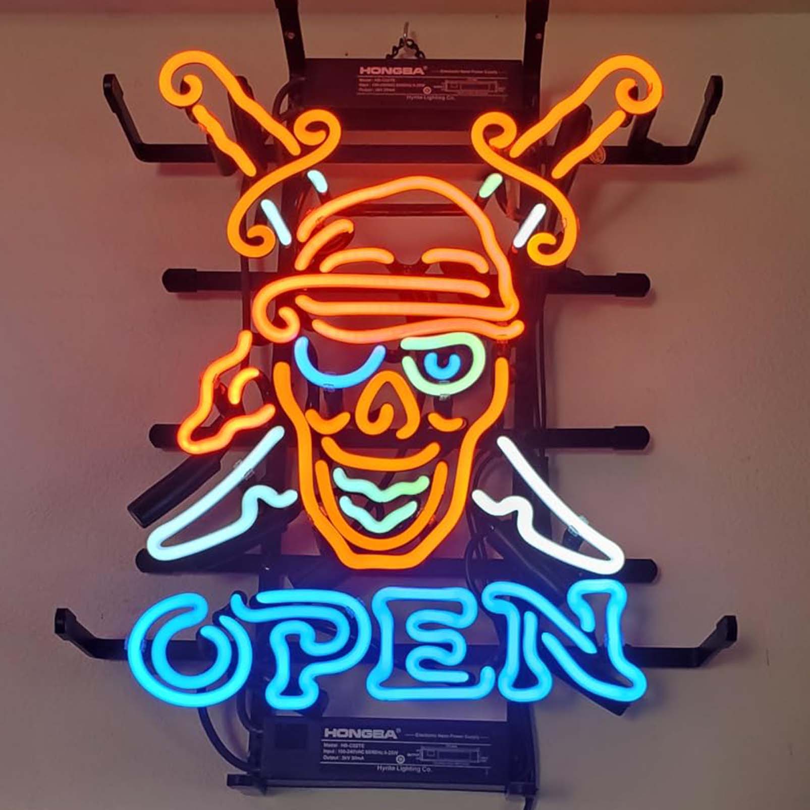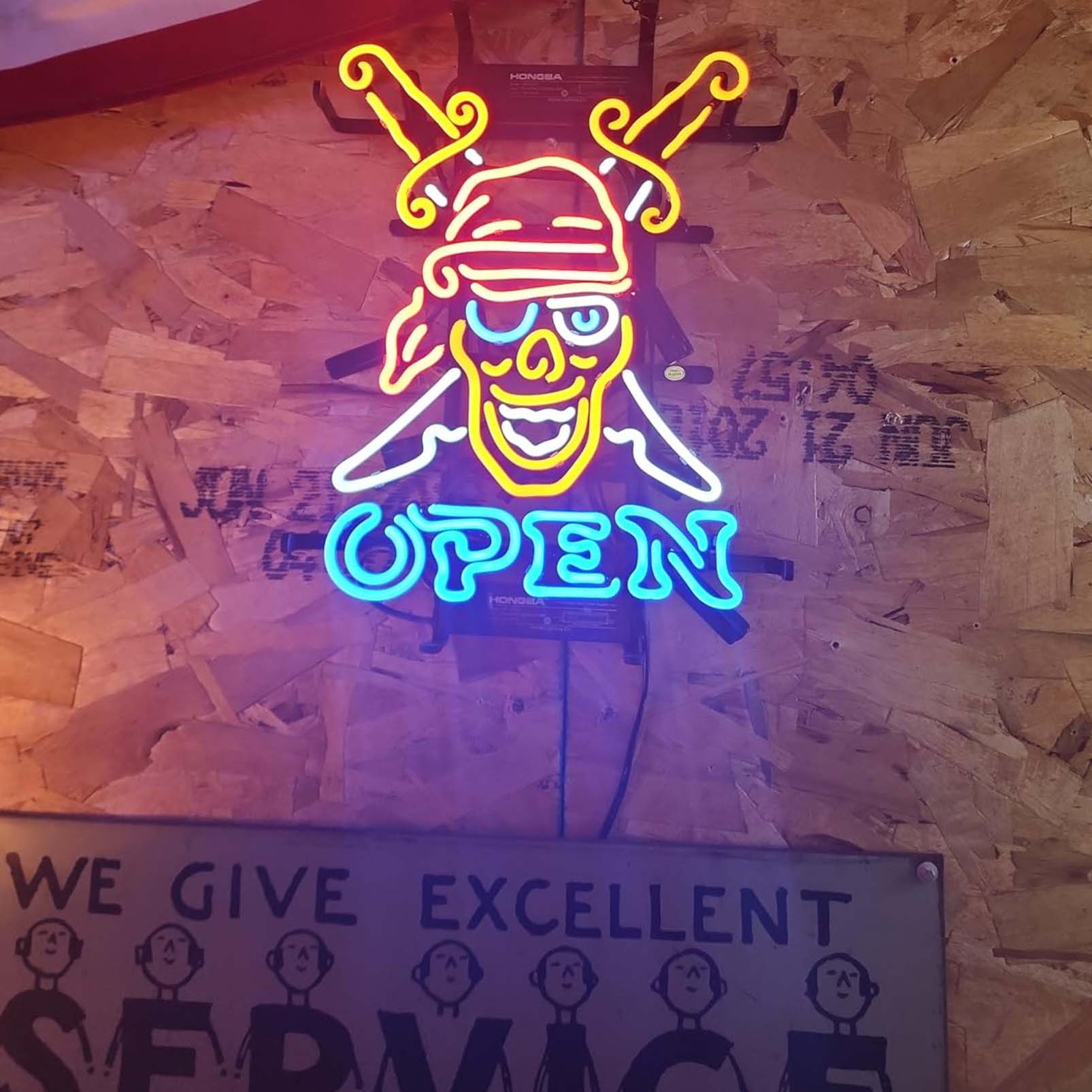 High quality super bright pirate style sign, large glowing glass tube neon LED sign for office, party, coffee shop, bar, birthday, man cave, home and event wall art decoration.