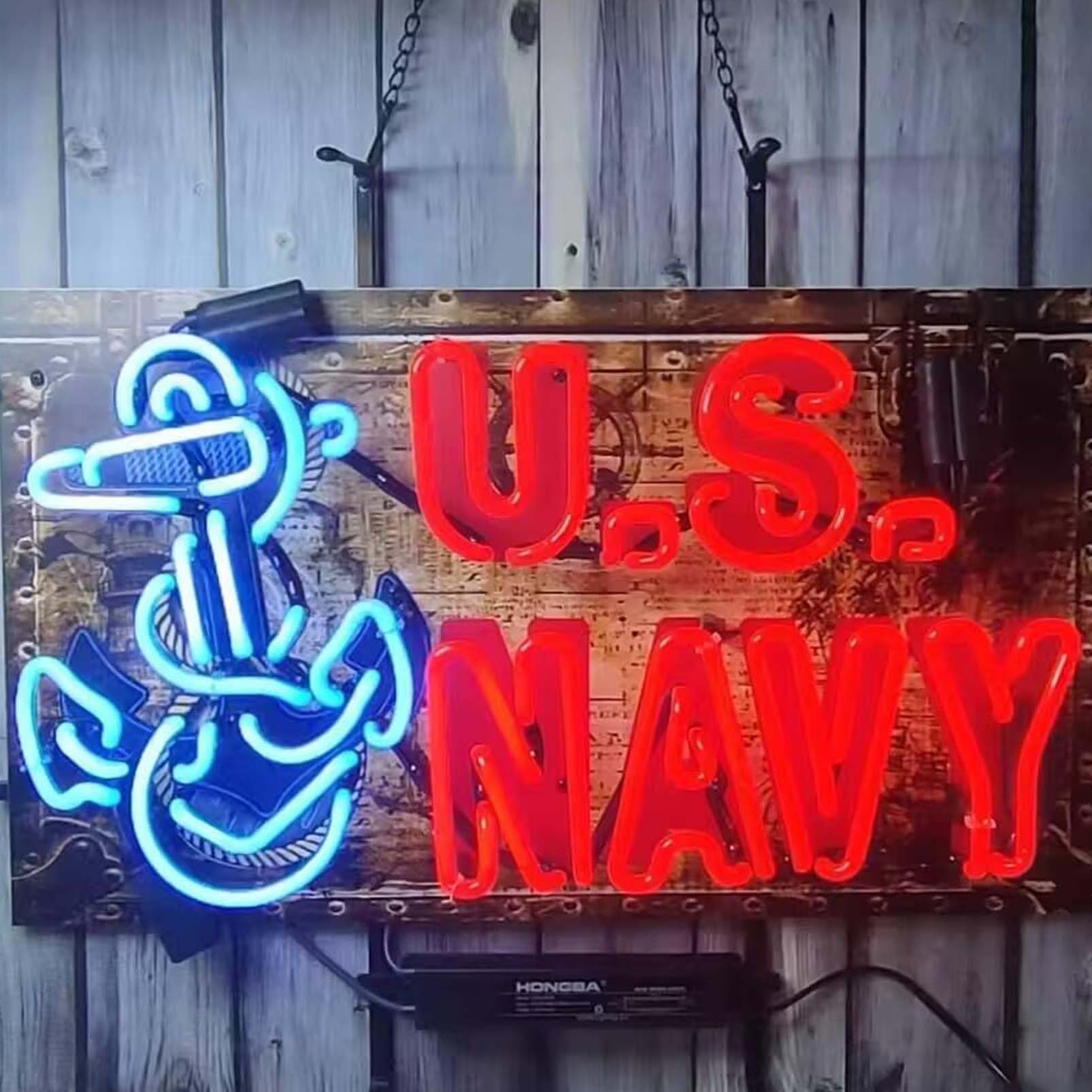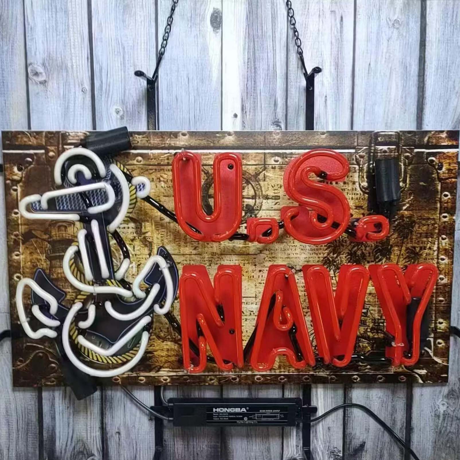 High quality super bright US Navy sign, large glowing glass tube neon LED sign for office, party, coffee shop, bar, birthday, man cave, home and event wall art decoration.
